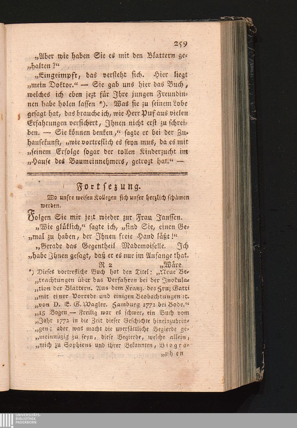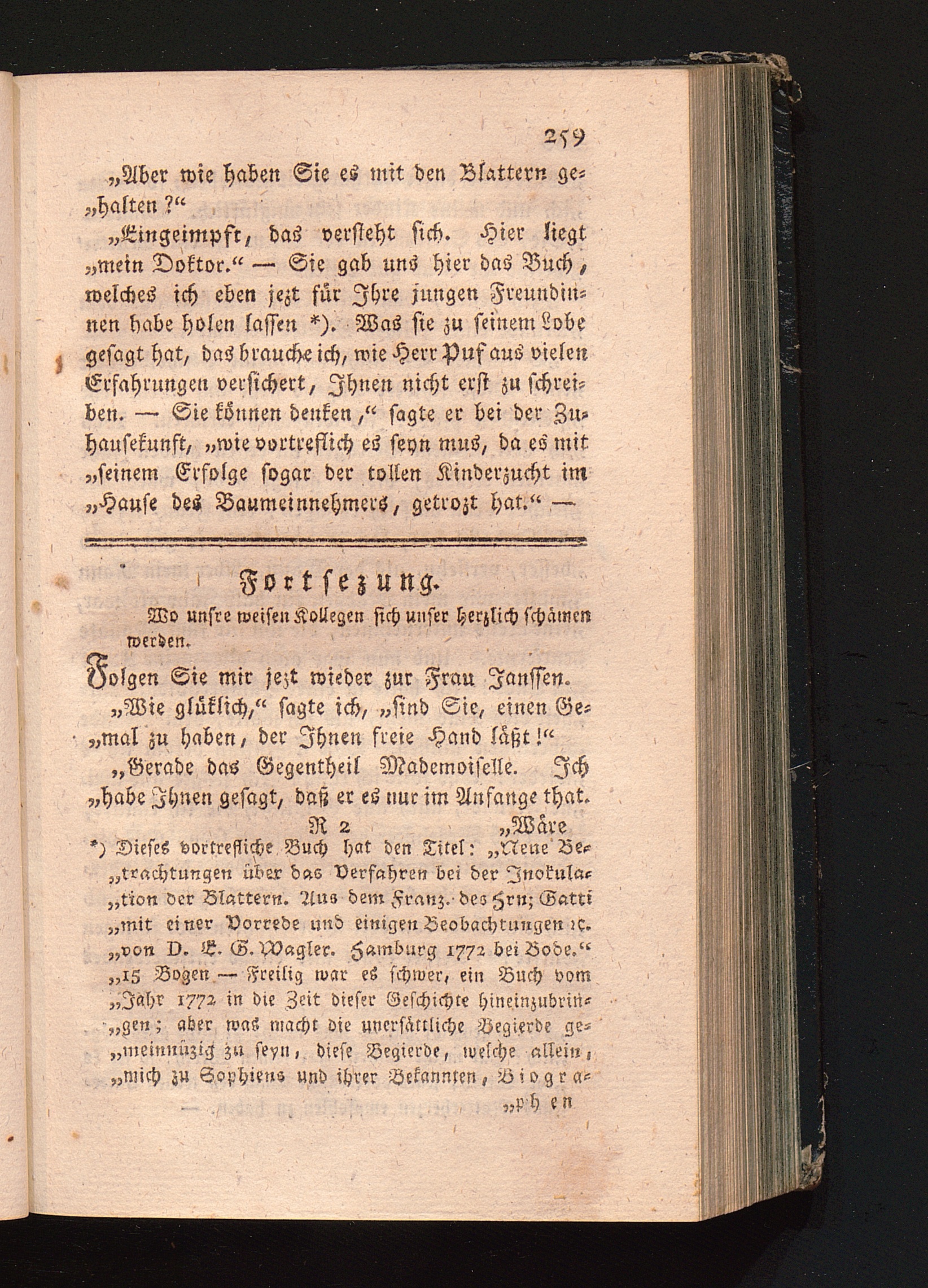 Fortsezung, wo unsre weisen Collegen sich unsrer herzlich schämen werden.