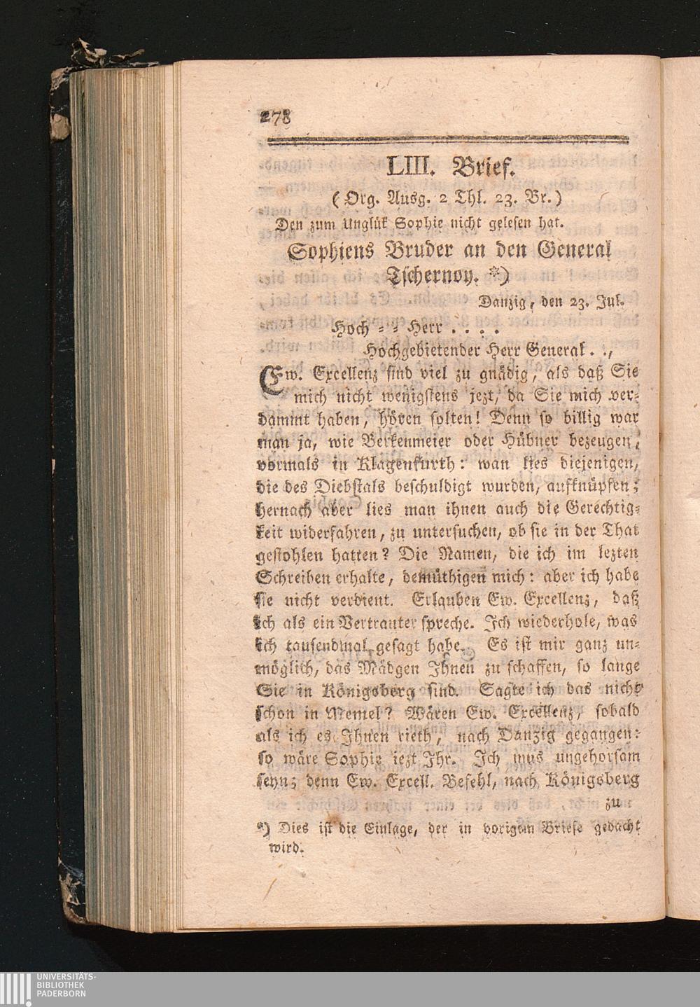 LIII. Brief, den zum Unglük Sophie nicht gelesen hat.