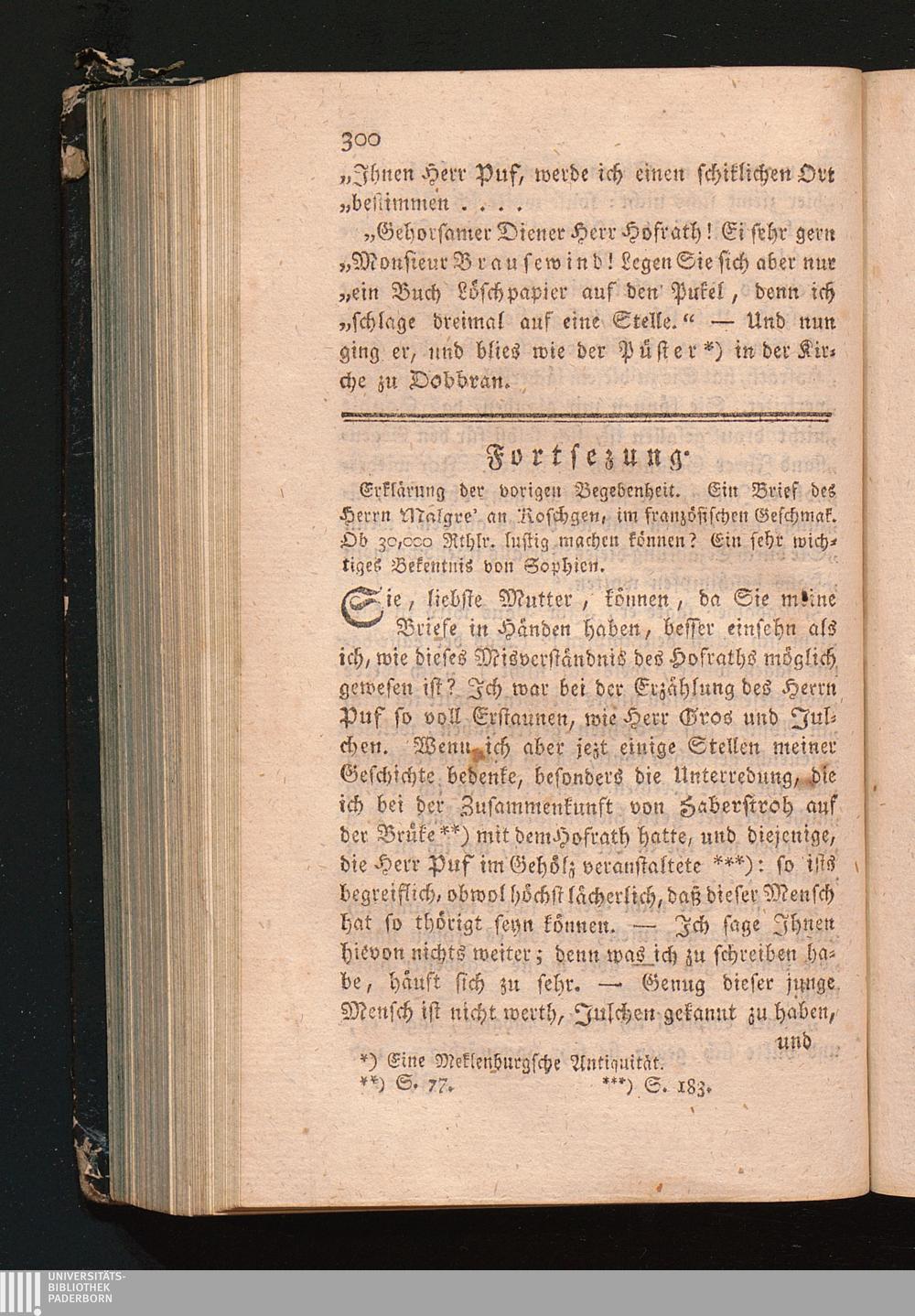 Fortsezung. Erklärung der vorigen Begebenheit. Ein Brief des Herrn Malgrè an Koschgen[...]