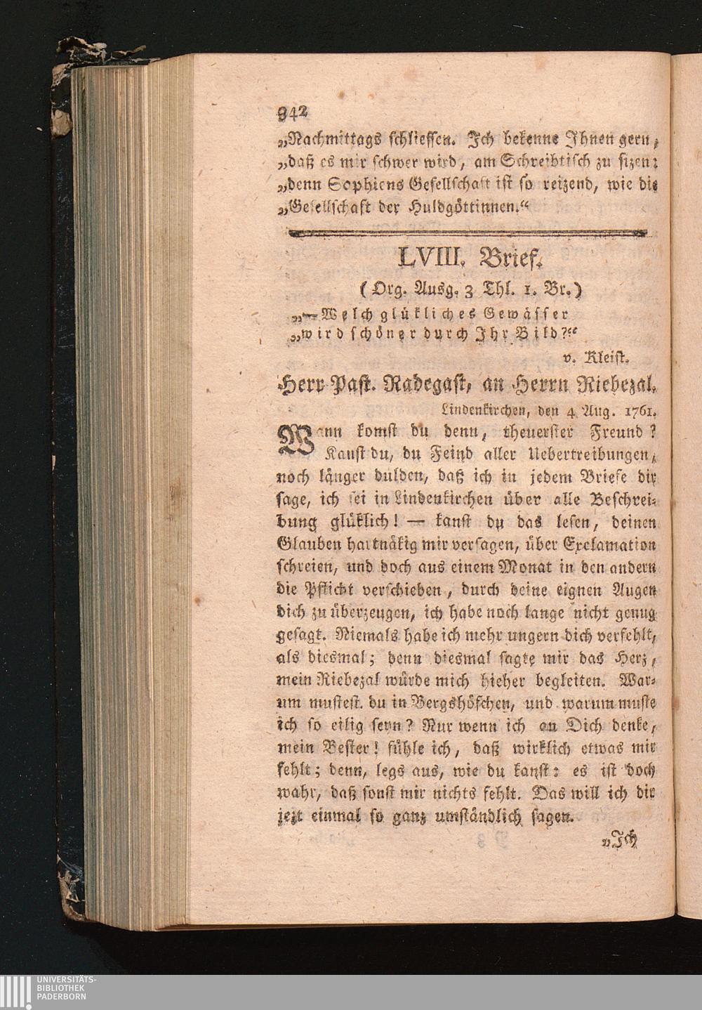 LVIII. Brief. „- Welch glükliches Gewässer „wird schöner durch Jhr Bild?"