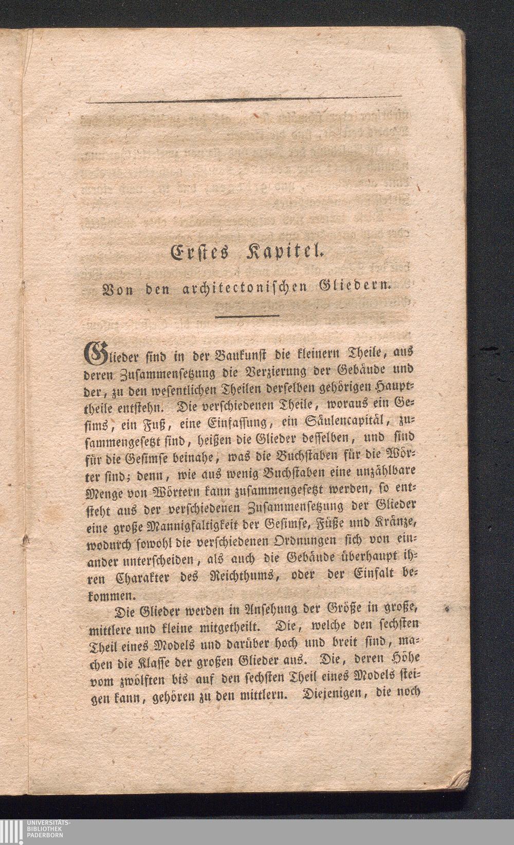 Erstes Kapitel. Von den architectonischen Gliedern.