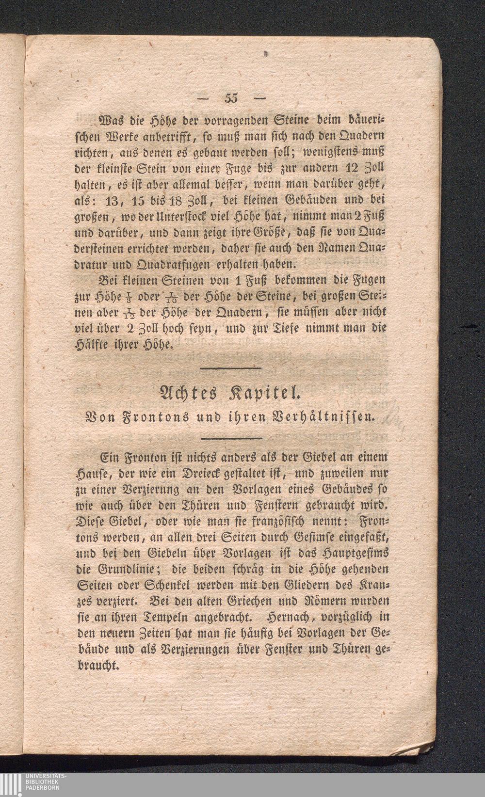 Achtes Kapitel. Von Frontons und ihren Verhältnissen.