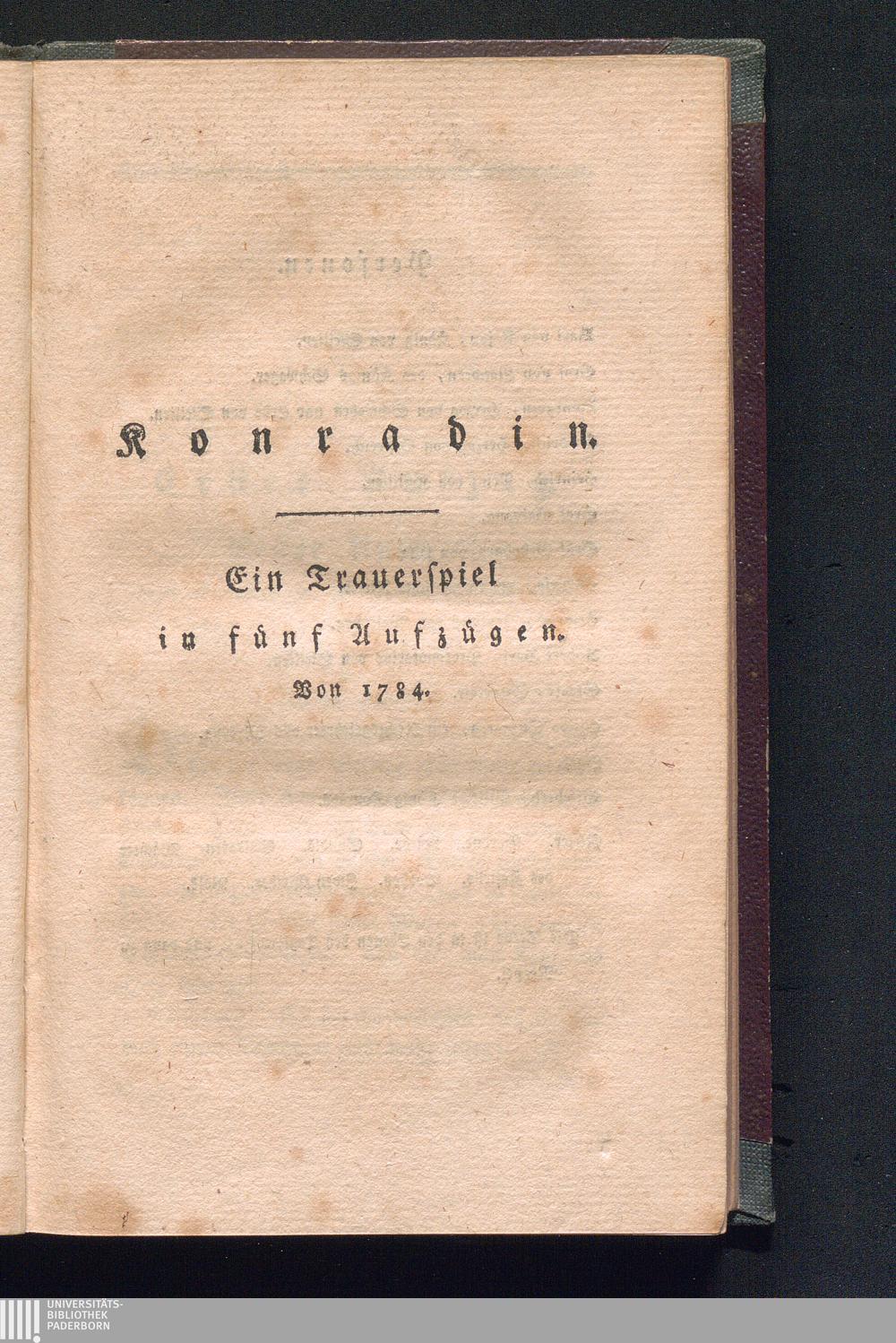 Konradin. Ein Trauerspiel in fünf Aufzügen. Von 1784.