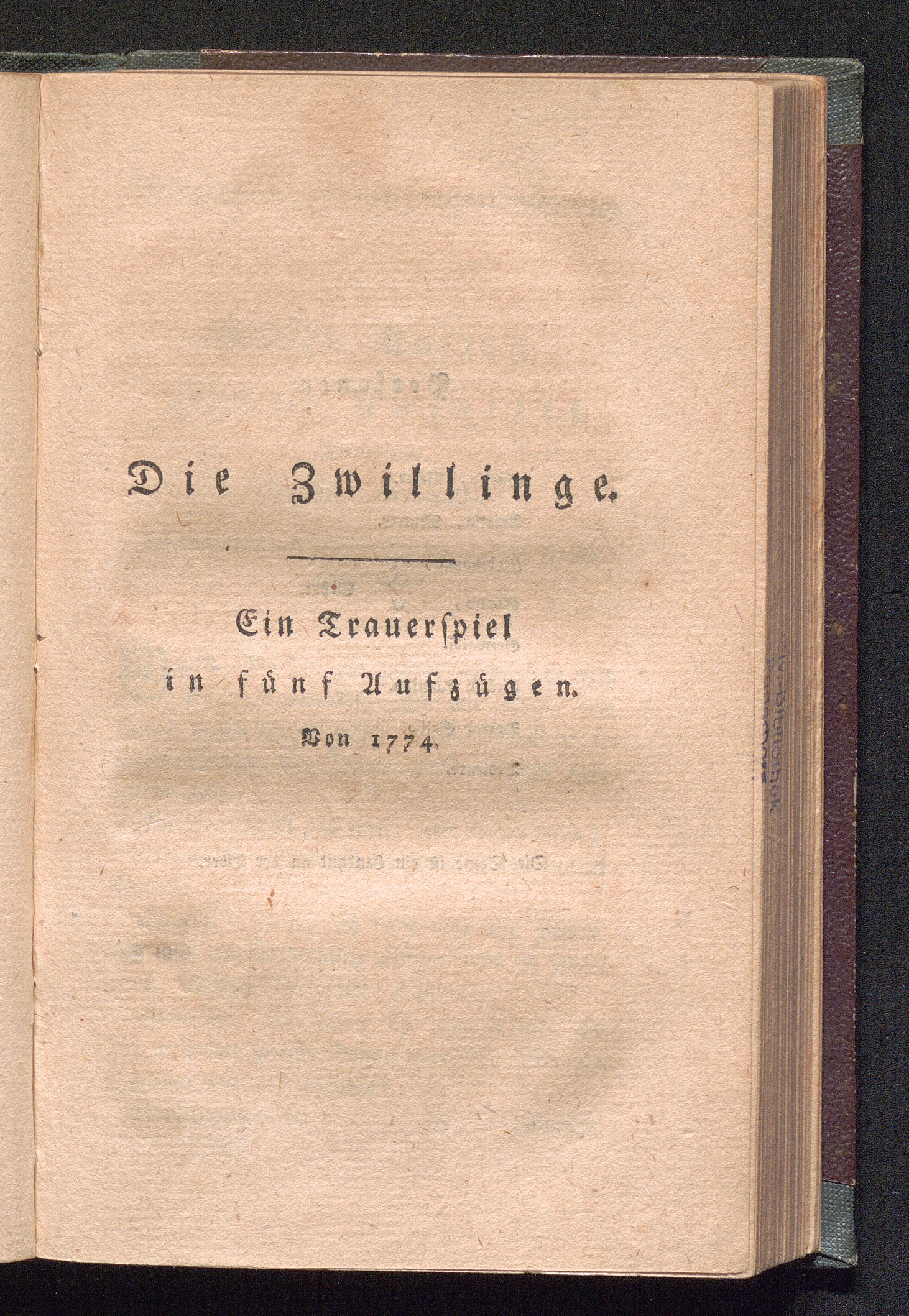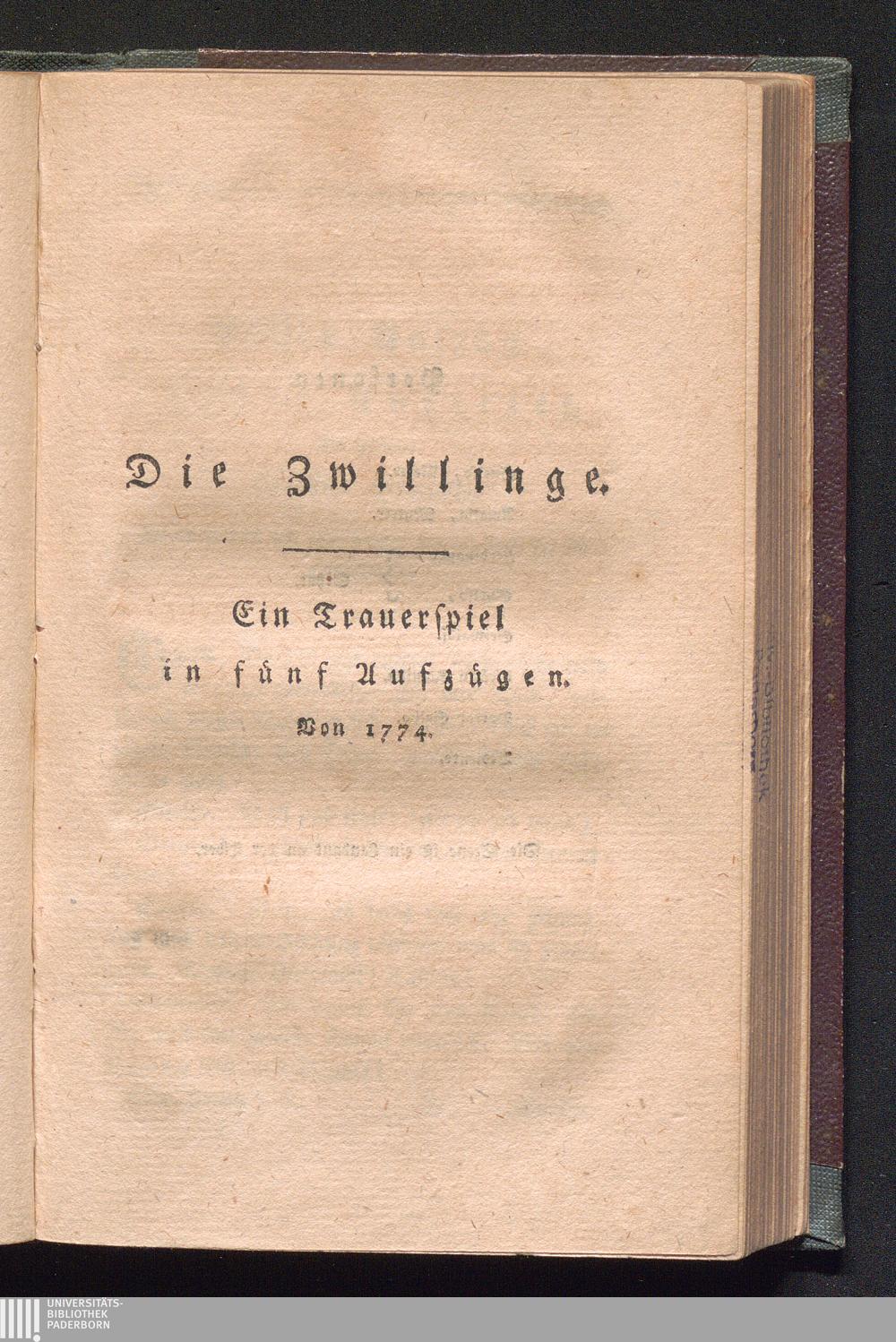 Die Zwillinge. Ein Trauerspiel in fünf Aufzügen. Von 1774.