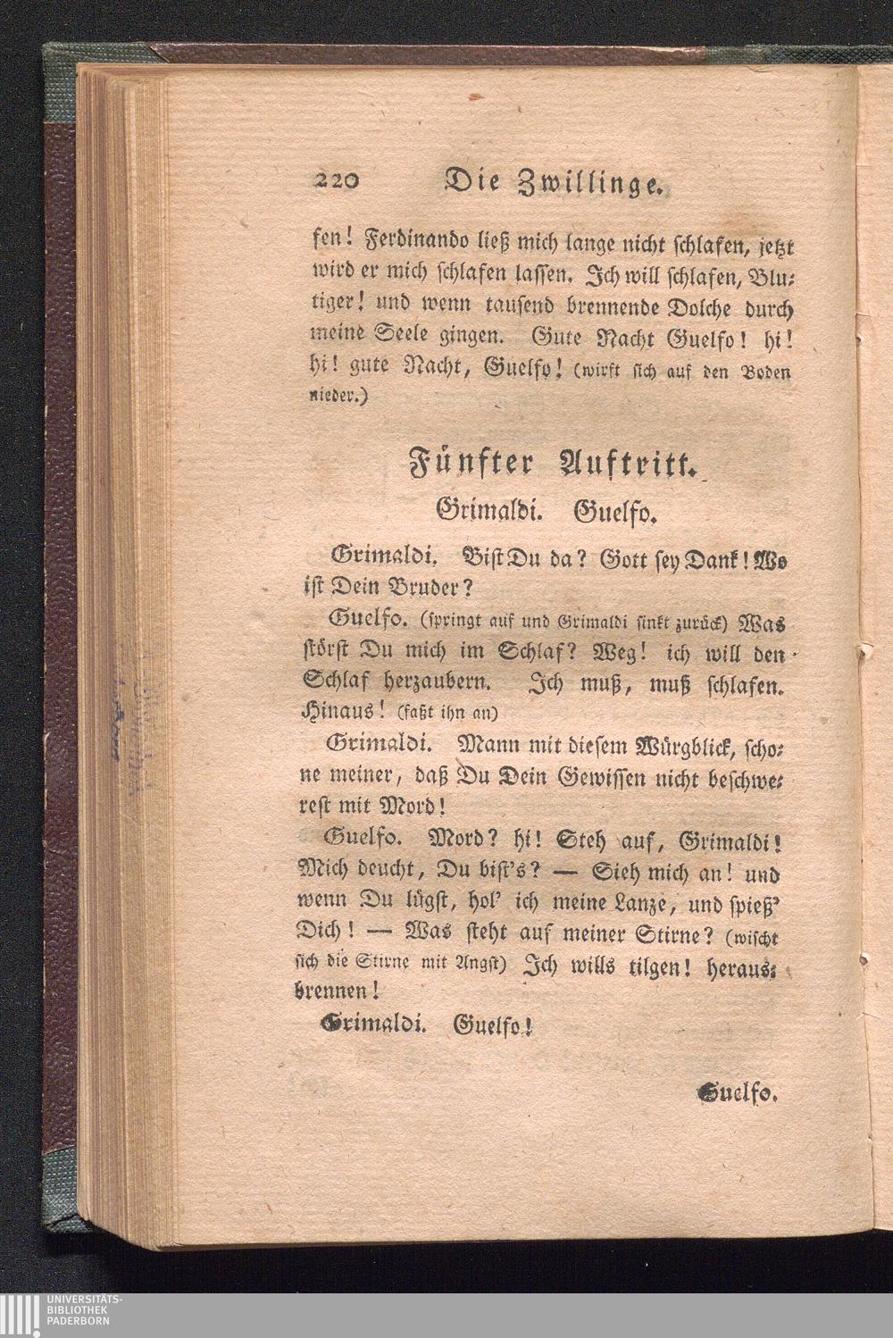 Die Zwillinge. Ein Trauerspiel in fünf Aufzügen. Von 1774.