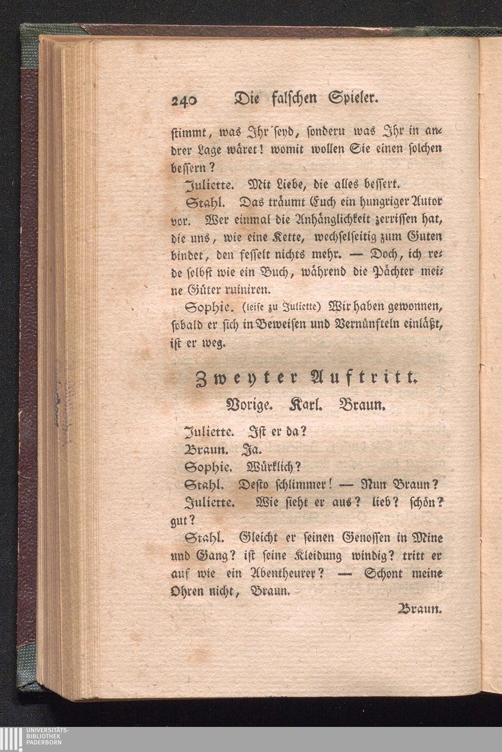 Die falschen Spieler. Ein Lustspiel in fünf Aufzügen. Von 1780.