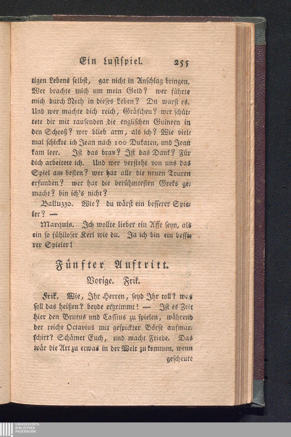 Die falschen Spieler. Ein Lustspiel in fünf Aufzügen. Von 1780.