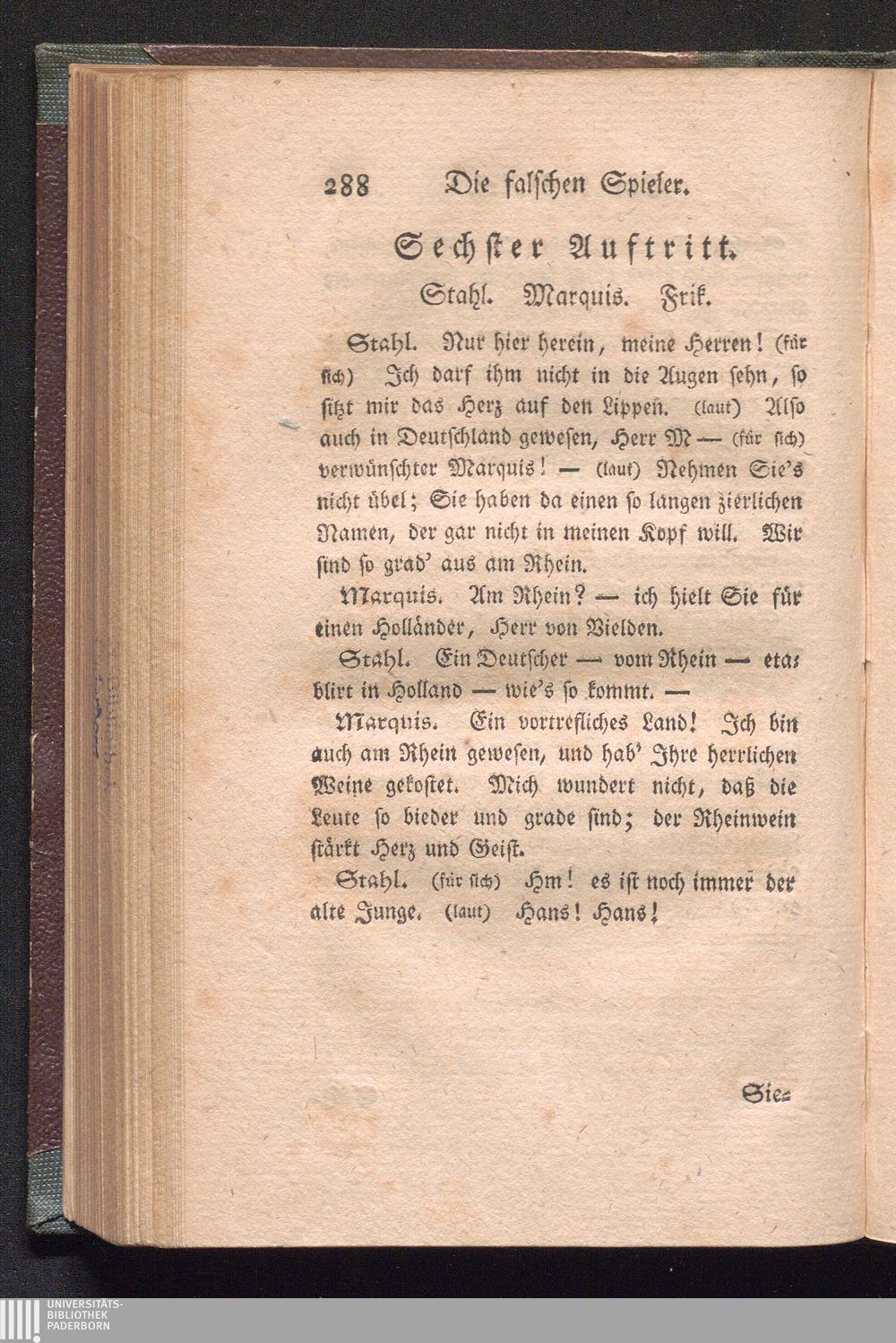 Die falschen Spieler. Ein Lustspiel in fünf Aufzügen. Von 1780.