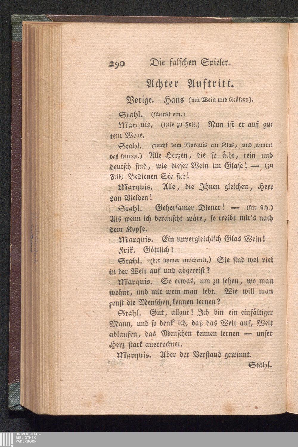 Die falschen Spieler. Ein Lustspiel in fünf Aufzügen. Von 1780.