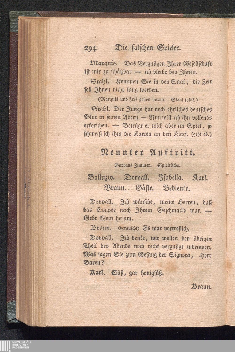 Die falschen Spieler. Ein Lustspiel in fünf Aufzügen. Von 1780.