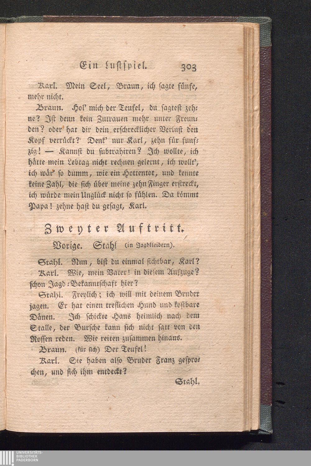 Die falschen Spieler. Ein Lustspiel in fünf Aufzügen. Von 1780.