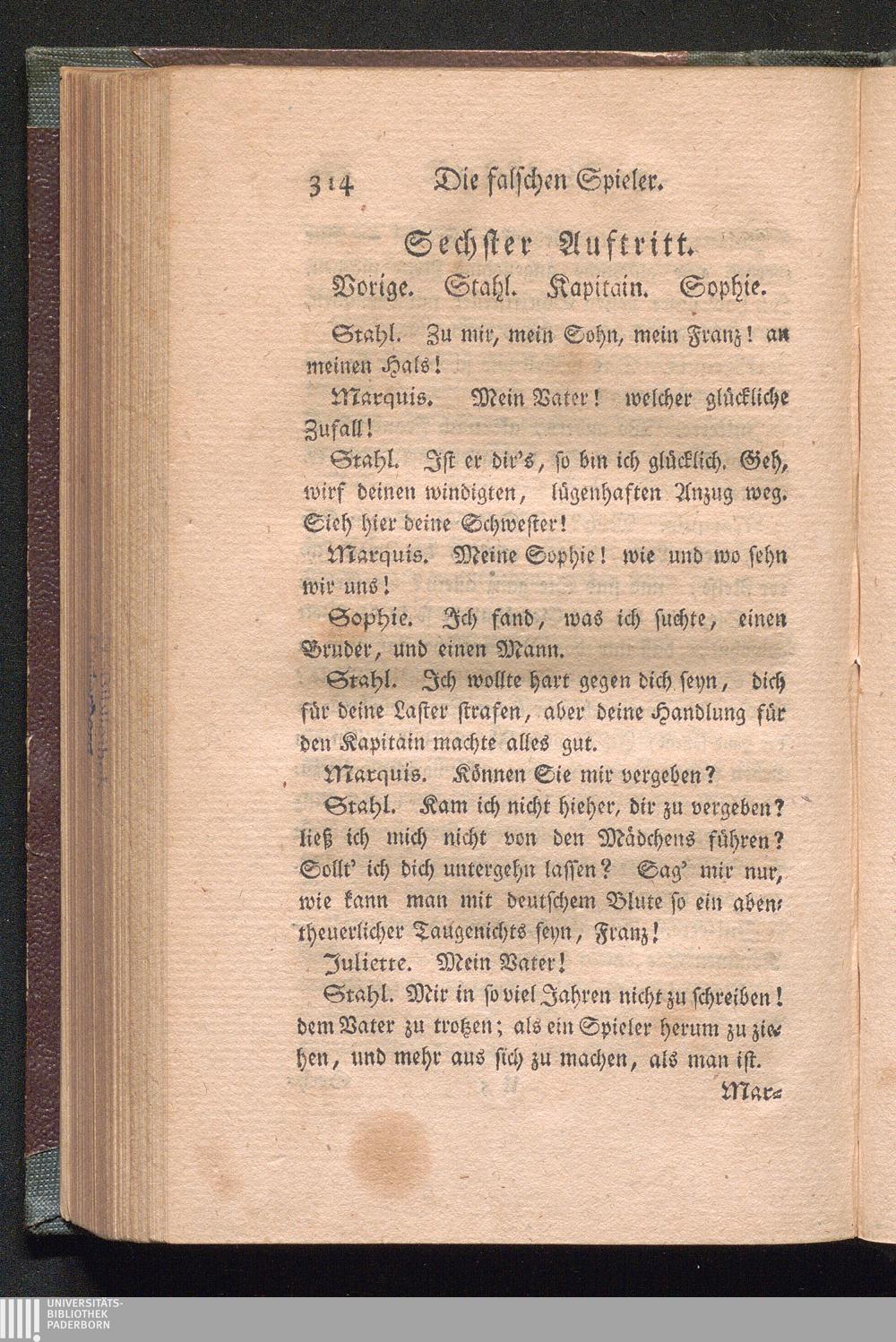 Die falschen Spieler. Ein Lustspiel in fünf Aufzügen. Von 1780.