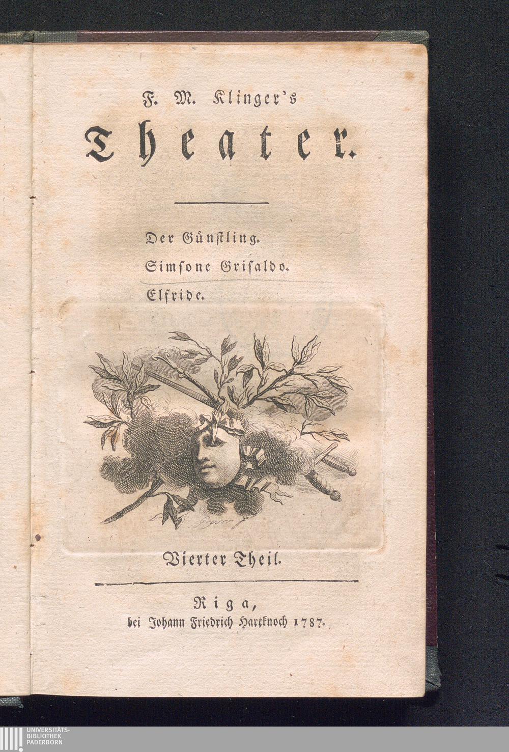 Vierter Theil (1787) Der Günstling. Simsone Grisaldo. Elfride