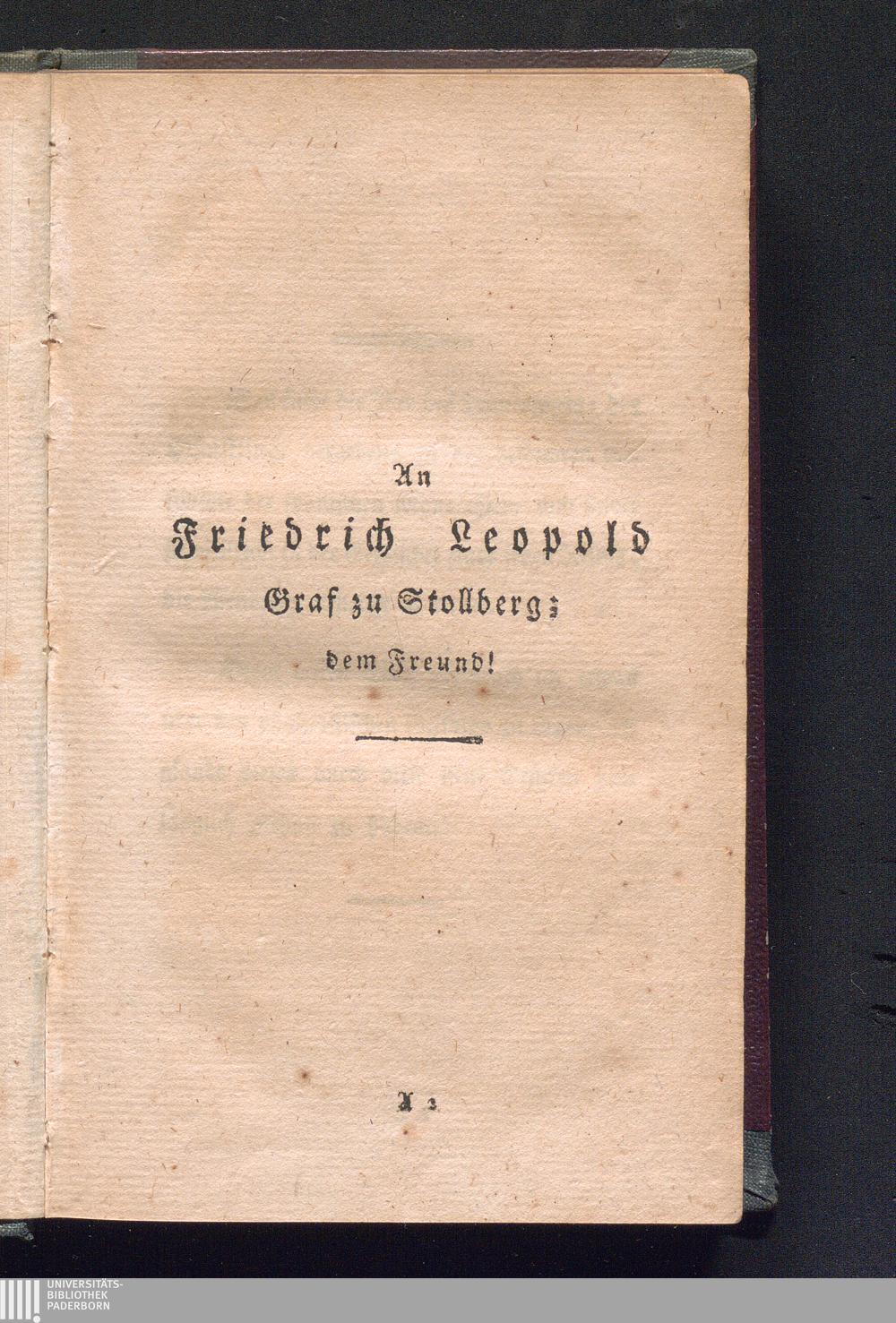 An Friedrich Leopold Graf zu Stollberg; dem Freund!