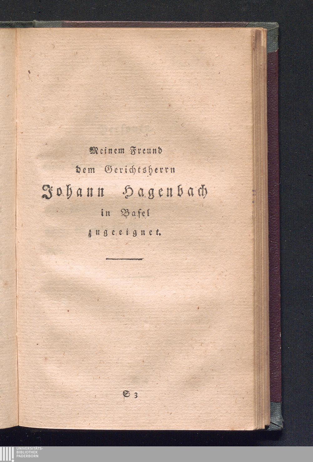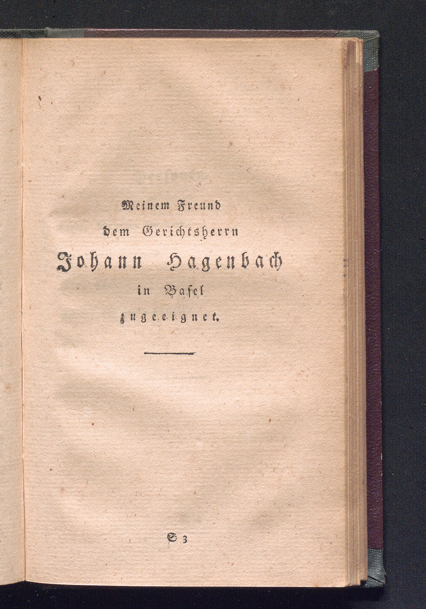 Meinem Freund dem Gerichtsherrn Johann Hagenbach in Basel zugeeignet.