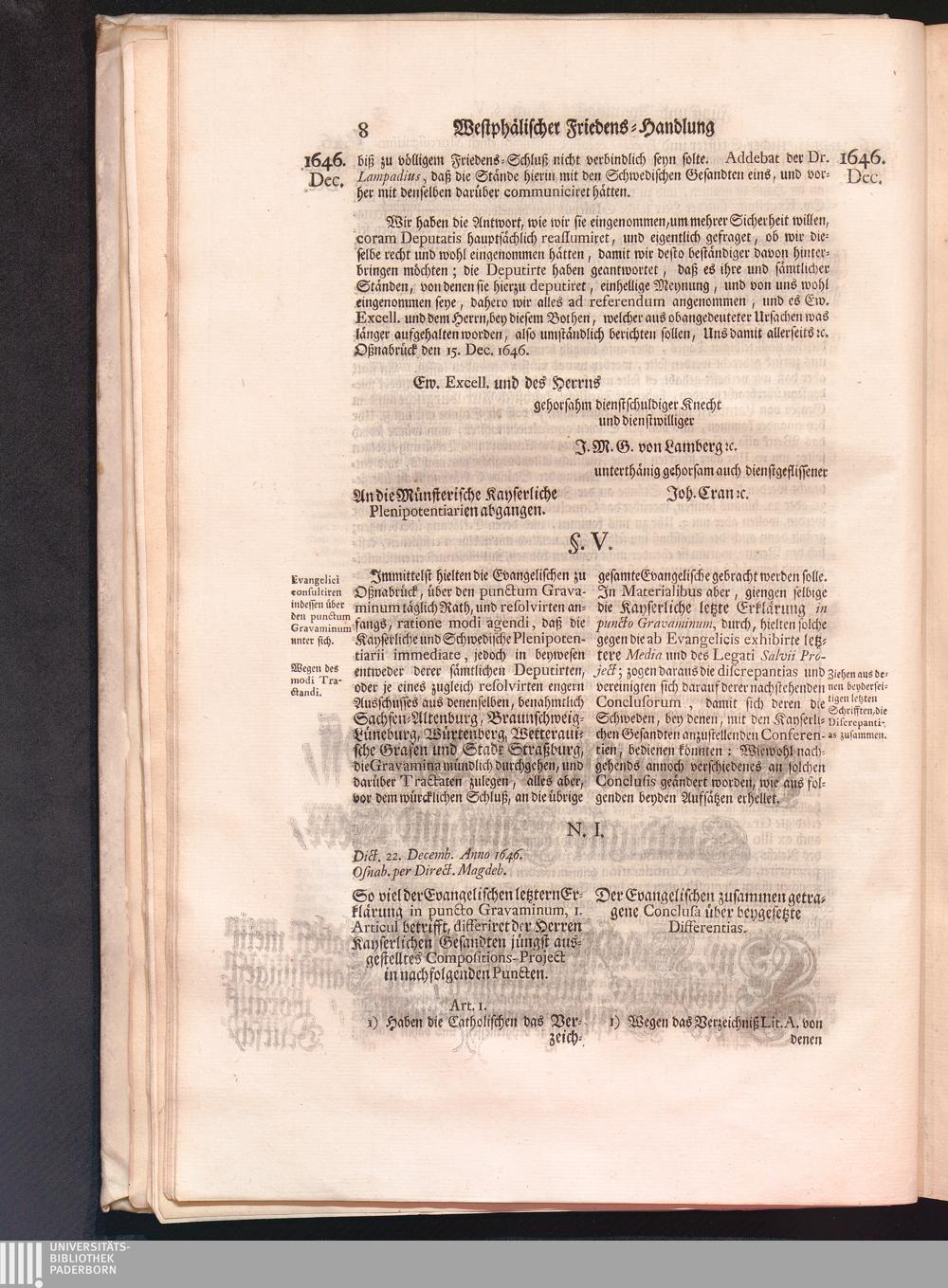Vierdter Theil (1735) Worinnen enthalten, was vom Anfang des Jahrs 1647. biß gegen Ende desselben zwischen Jhro Römisch-Kayserlichen Majestät, dann den Beyden Cronen Franckreich und Schweden, ingleichen des Heiligen Römischen Reichs Chur-Fürsten, Fürsten und Ständen, zu Oßnabrück und Münster gehandelt worden