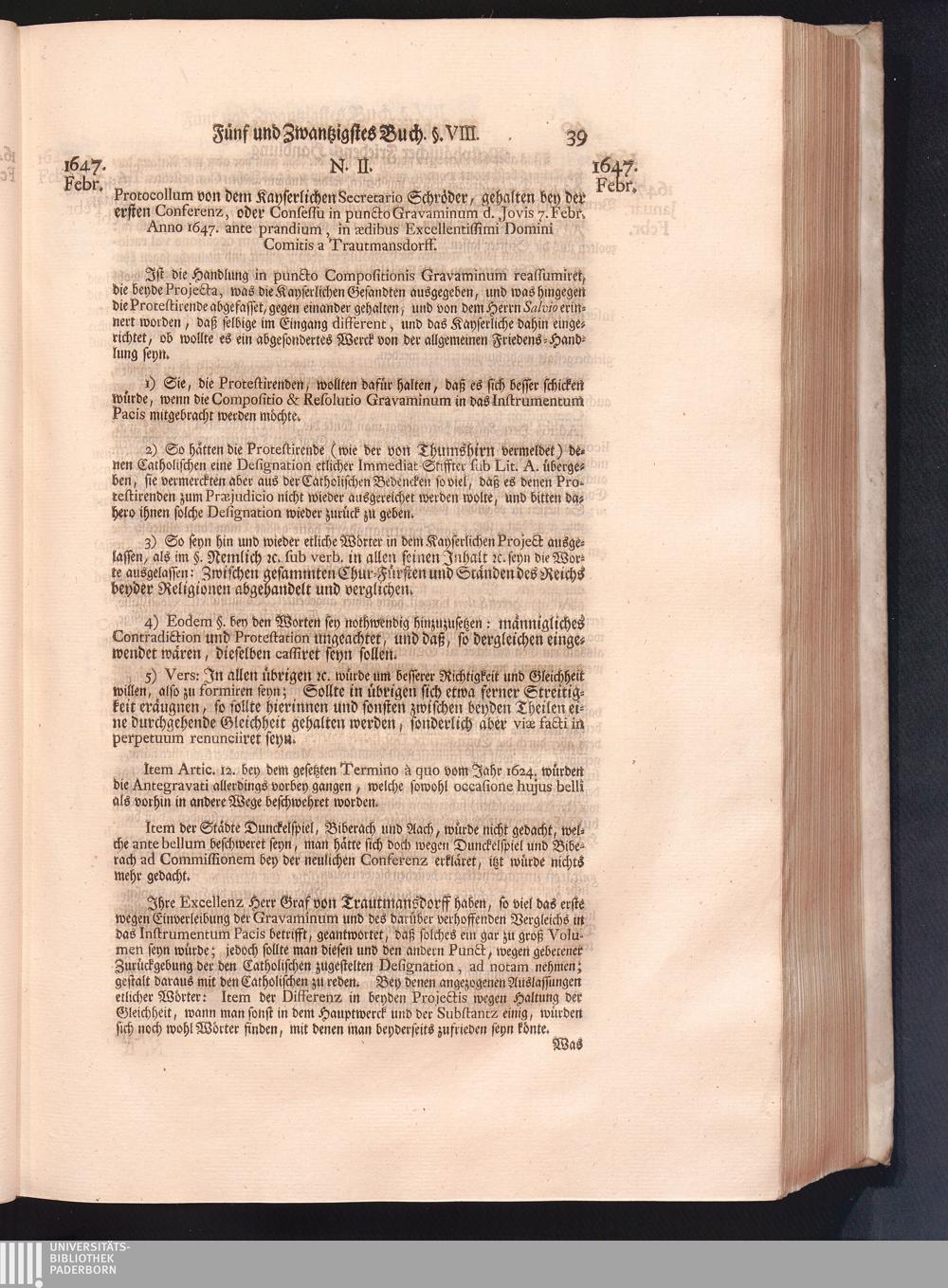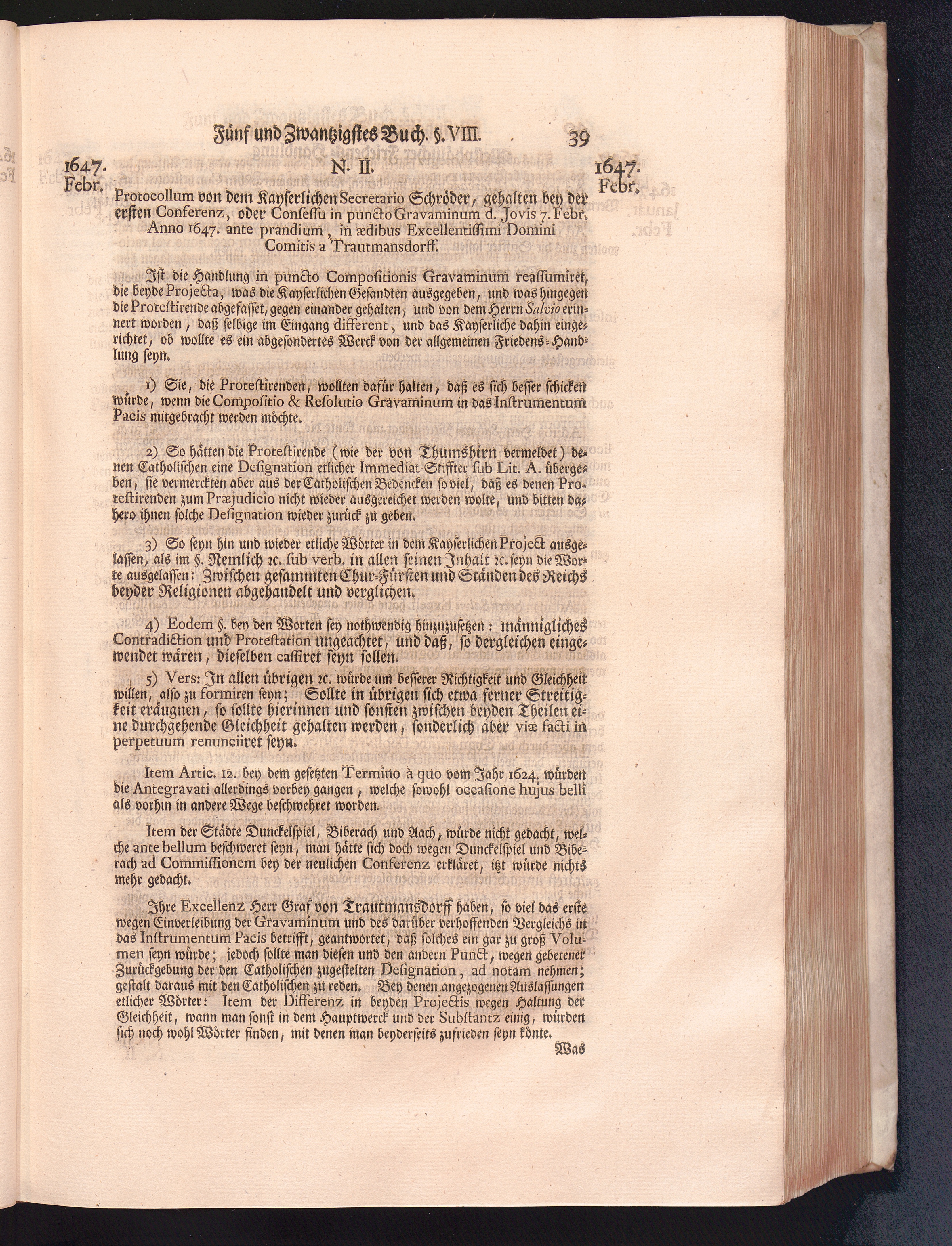 Vierdter Theil (1735) Worinnen enthalten, was vom Anfang des Jahrs 1647. biß gegen Ende desselben zwischen Jhro Römisch-Kayserlichen Majestät, dann den Beyden Cronen Franckreich und Schweden, ingleichen des Heiligen Römischen Reichs Chur-Fürsten, Fürsten und Ständen, zu Oßnabrück und Münster gehandelt worden