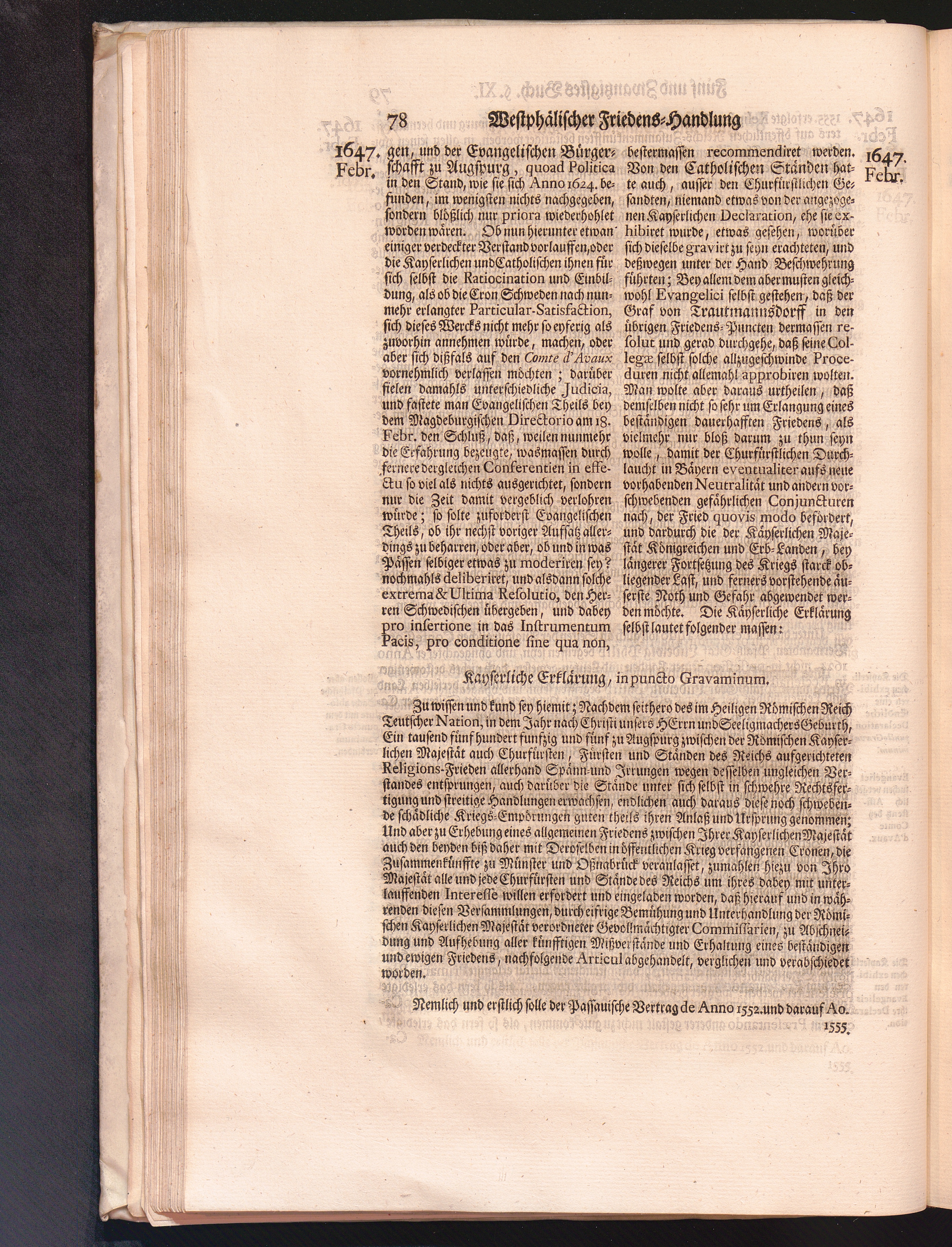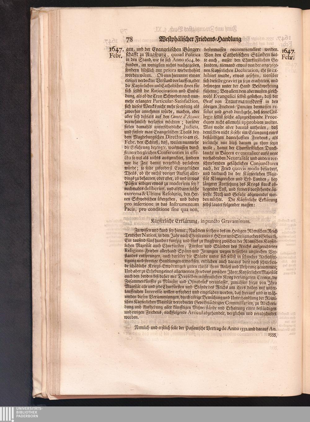 Vierdter Theil (1735) Worinnen enthalten, was vom Anfang des Jahrs 1647. biß gegen Ende desselben zwischen Jhro Römisch-Kayserlichen Majestät, dann den Beyden Cronen Franckreich und Schweden, ingleichen des Heiligen Römischen Reichs Chur-Fürsten, Fürsten und Ständen, zu Oßnabrück und Münster gehandelt worden