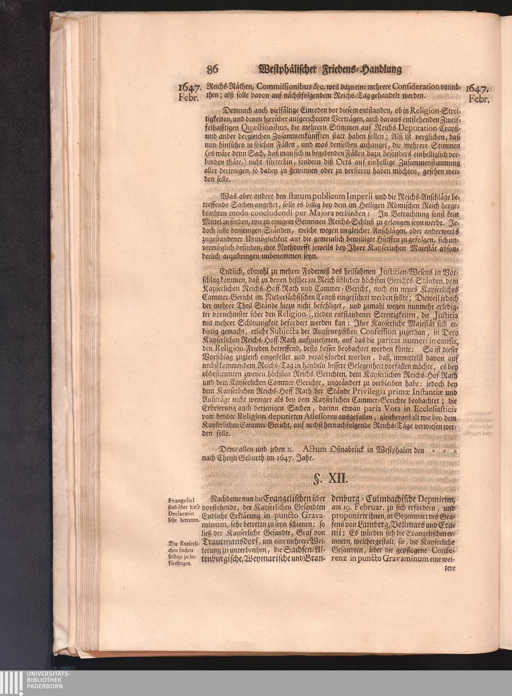 Vierdter Theil (1735) Worinnen enthalten, was vom Anfang des Jahrs 1647. biß gegen Ende desselben zwischen Jhro Römisch-Kayserlichen Majestät, dann den Beyden Cronen Franckreich und Schweden, ingleichen des Heiligen Römischen Reichs Chur-Fürsten, Fürsten und Ständen, zu Oßnabrück und Münster gehandelt worden