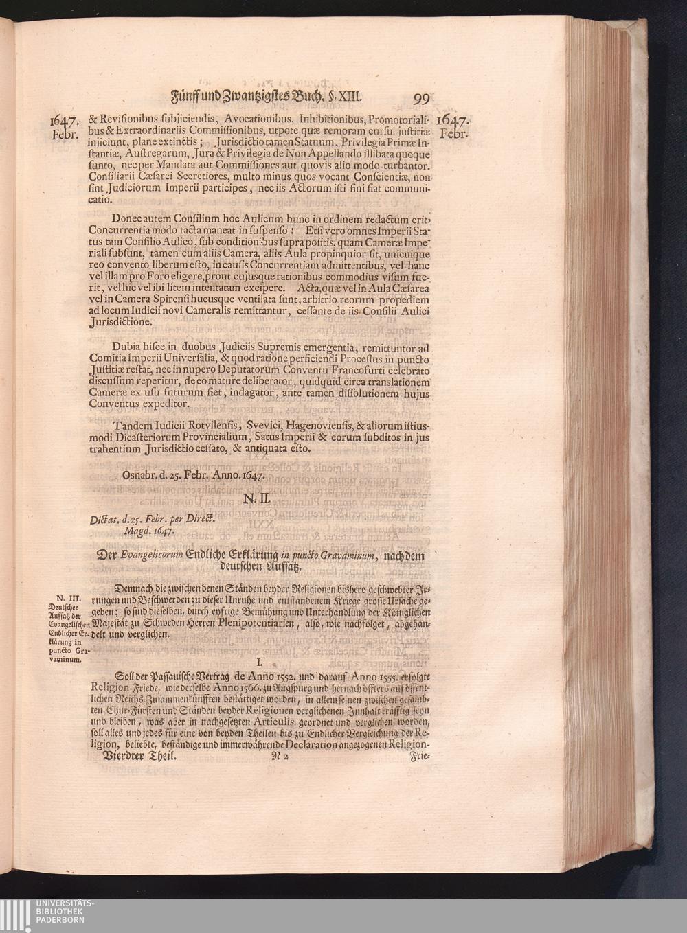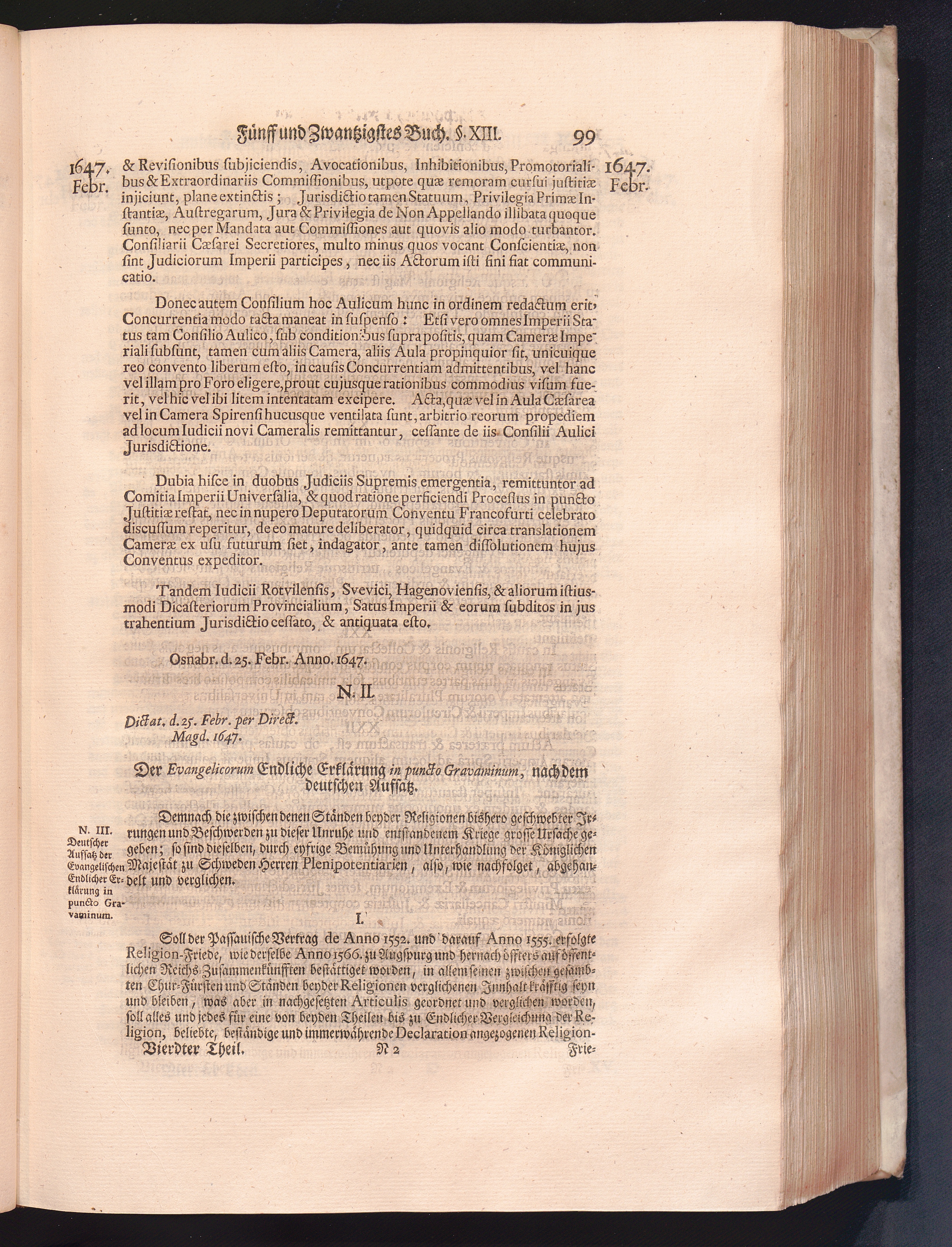 Vierdter Theil (1735) Worinnen enthalten, was vom Anfang des Jahrs 1647. biß gegen Ende desselben zwischen Jhro Römisch-Kayserlichen Majestät, dann den Beyden Cronen Franckreich und Schweden, ingleichen des Heiligen Römischen Reichs Chur-Fürsten, Fürsten und Ständen, zu Oßnabrück und Münster gehandelt worden