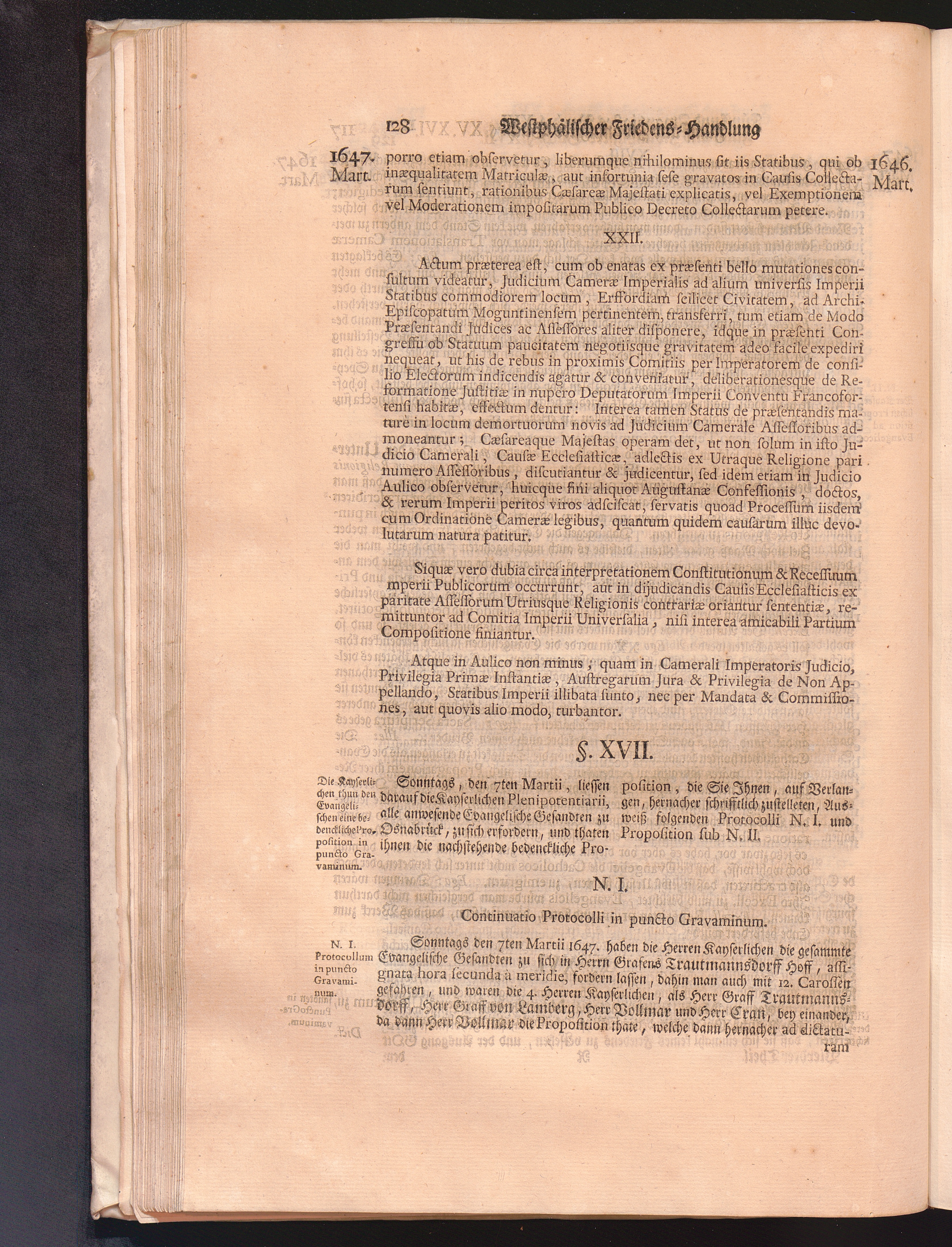 Vierdter Theil (1735) Worinnen enthalten, was vom Anfang des Jahrs 1647. biß gegen Ende desselben zwischen Jhro Römisch-Kayserlichen Majestät, dann den Beyden Cronen Franckreich und Schweden, ingleichen des Heiligen Römischen Reichs Chur-Fürsten, Fürsten und Ständen, zu Oßnabrück und Münster gehandelt worden