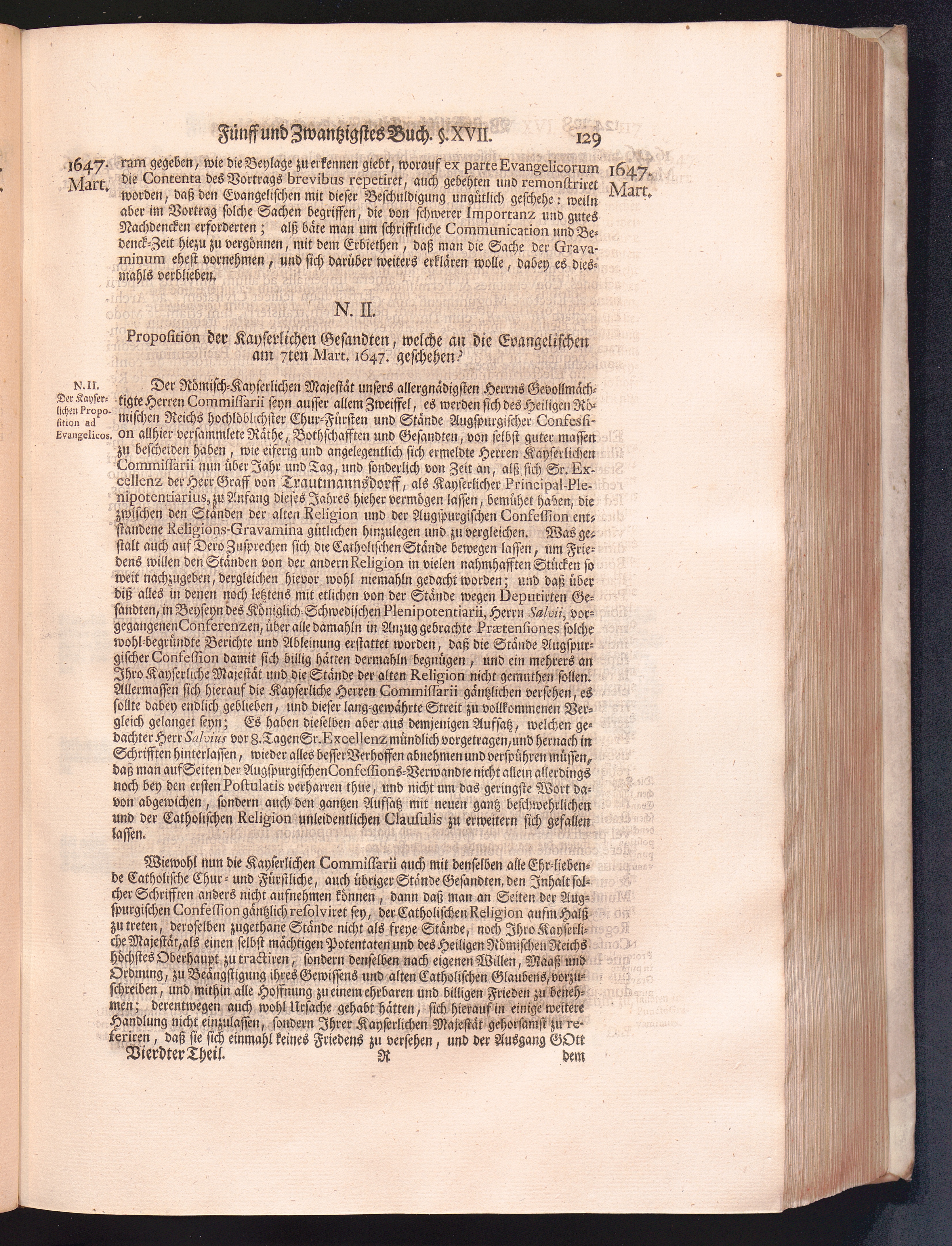 Vierdter Theil (1735) Worinnen enthalten, was vom Anfang des Jahrs 1647. biß gegen Ende desselben zwischen Jhro Römisch-Kayserlichen Majestät, dann den Beyden Cronen Franckreich und Schweden, ingleichen des Heiligen Römischen Reichs Chur-Fürsten, Fürsten und Ständen, zu Oßnabrück und Münster gehandelt worden