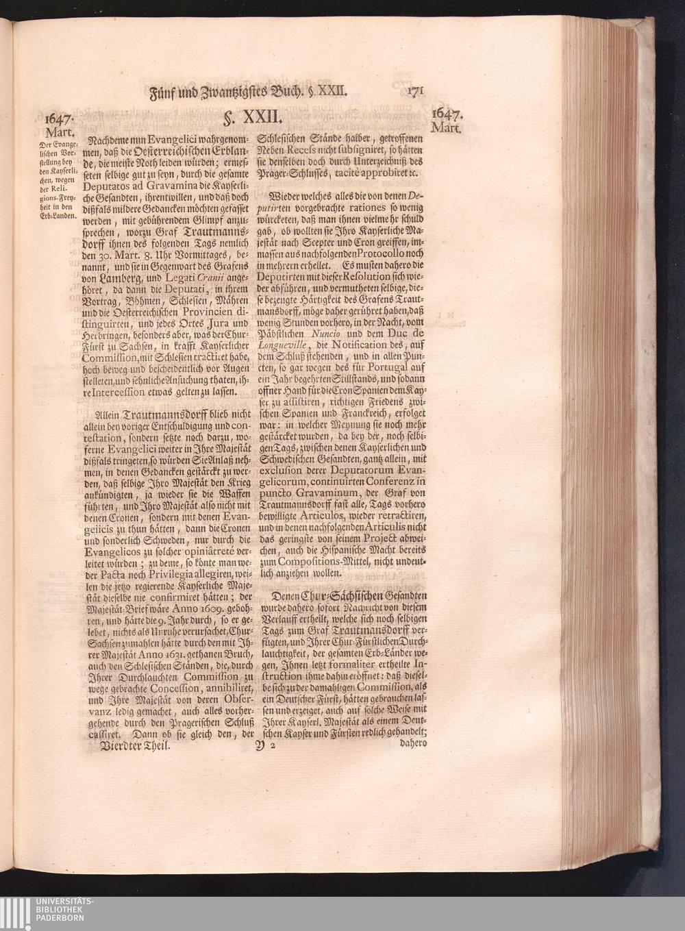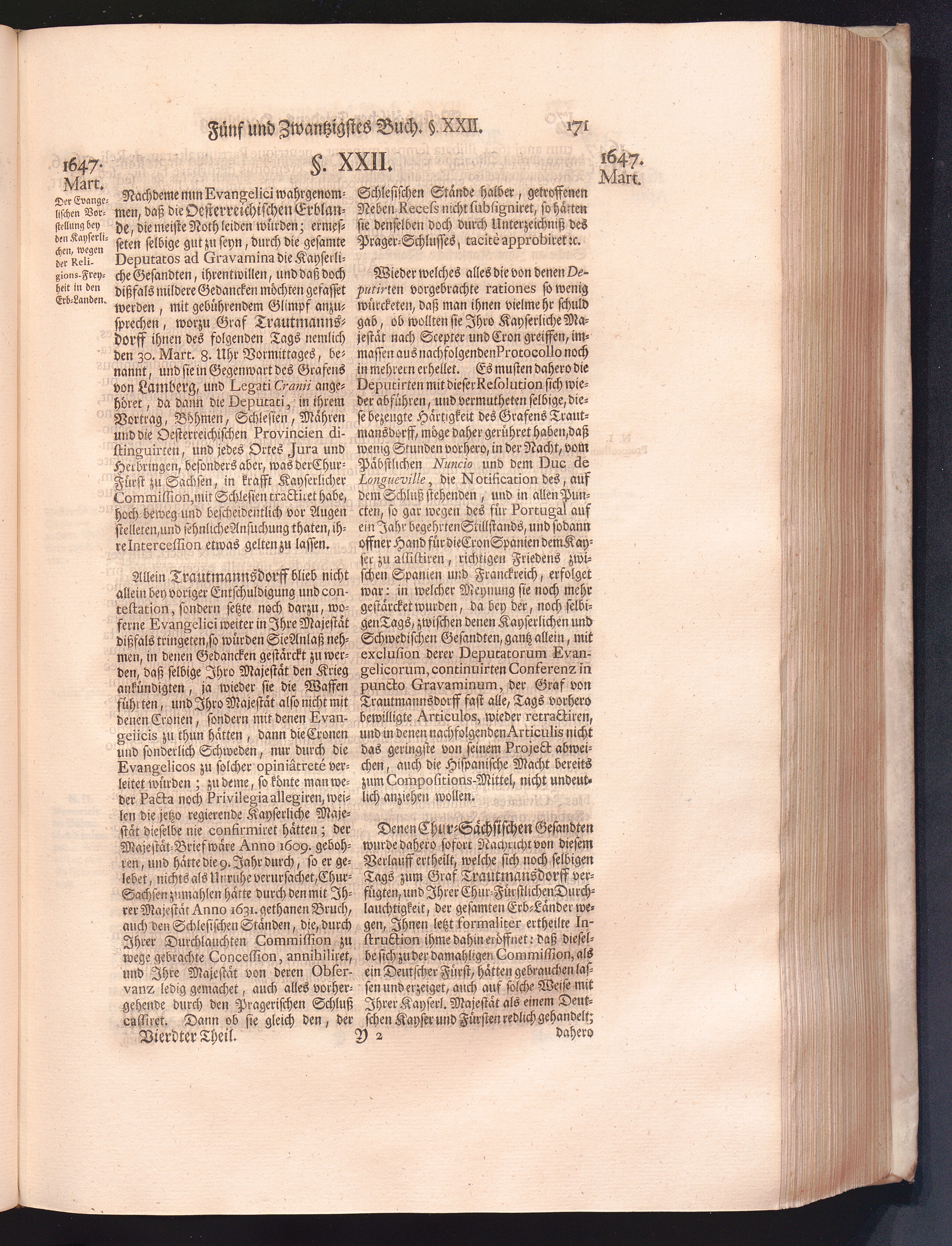 Vierdter Theil (1735) Worinnen enthalten, was vom Anfang des Jahrs 1647. biß gegen Ende desselben zwischen Jhro Römisch-Kayserlichen Majestät, dann den Beyden Cronen Franckreich und Schweden, ingleichen des Heiligen Römischen Reichs Chur-Fürsten, Fürsten und Ständen, zu Oßnabrück und Münster gehandelt worden