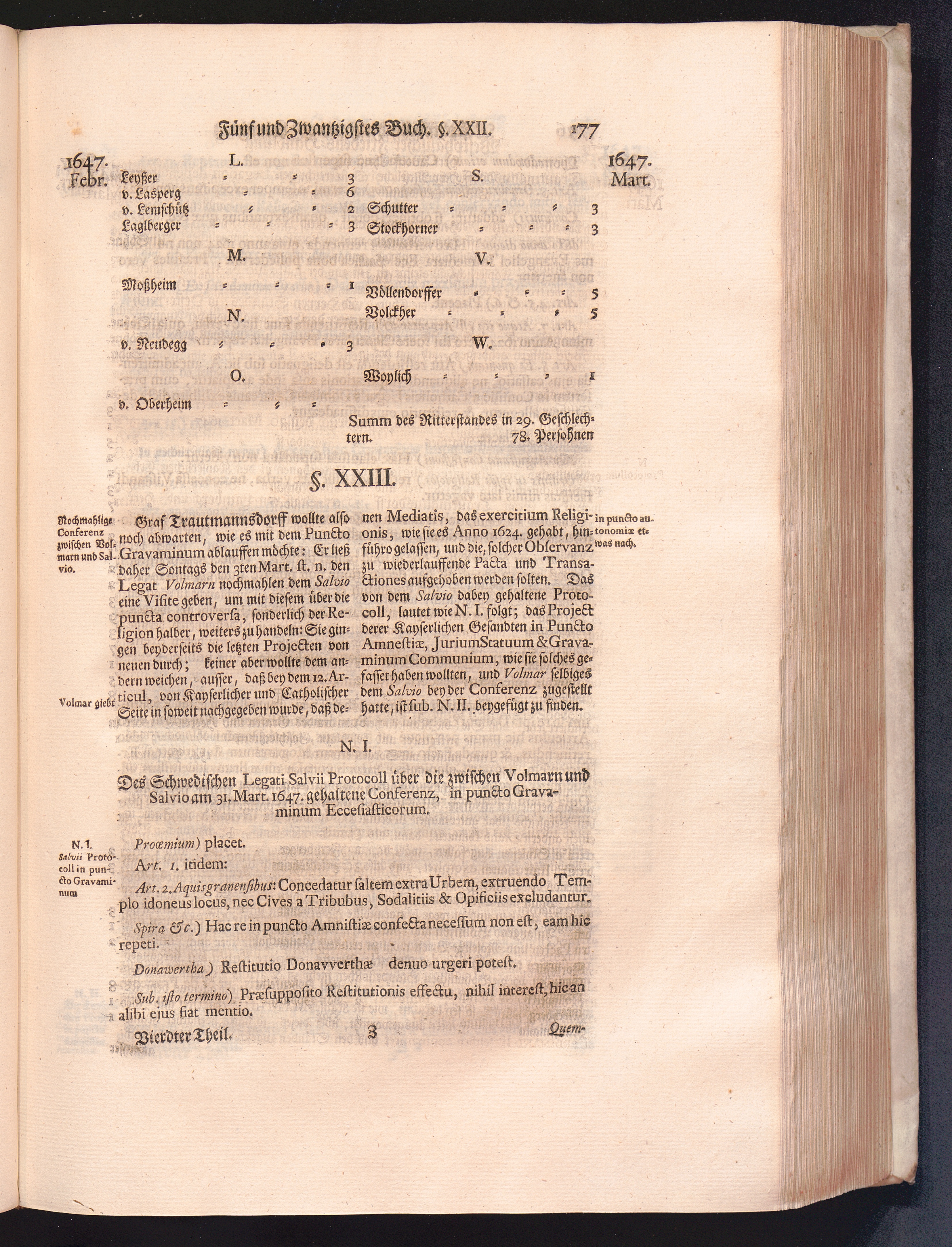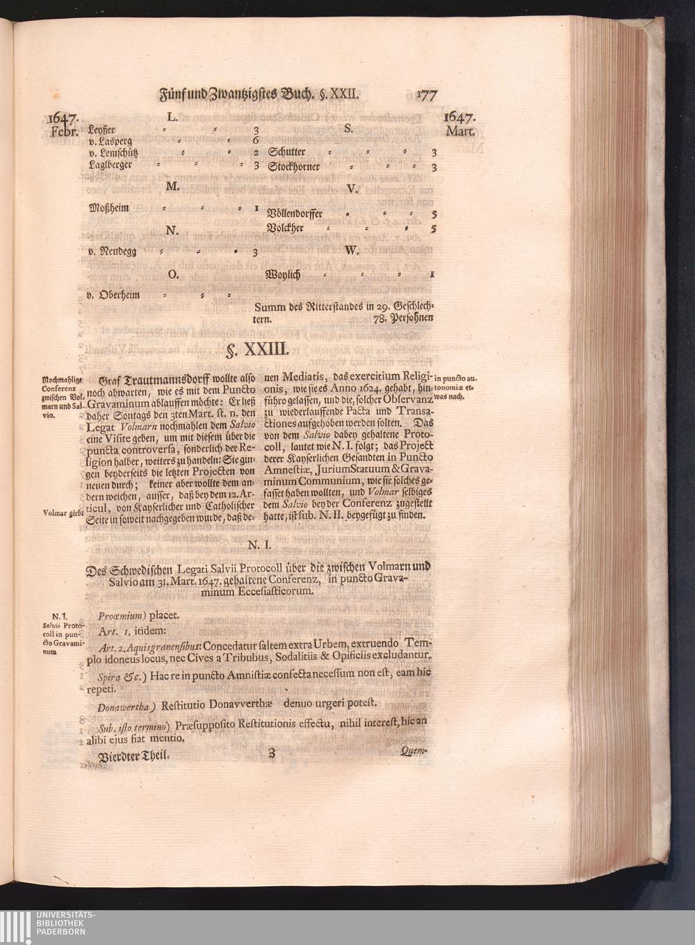 Vierdter Theil (1735) Worinnen enthalten, was vom Anfang des Jahrs 1647. biß gegen Ende desselben zwischen Jhro Römisch-Kayserlichen Majestät, dann den Beyden Cronen Franckreich und Schweden, ingleichen des Heiligen Römischen Reichs Chur-Fürsten, Fürsten und Ständen, zu Oßnabrück und Münster gehandelt worden