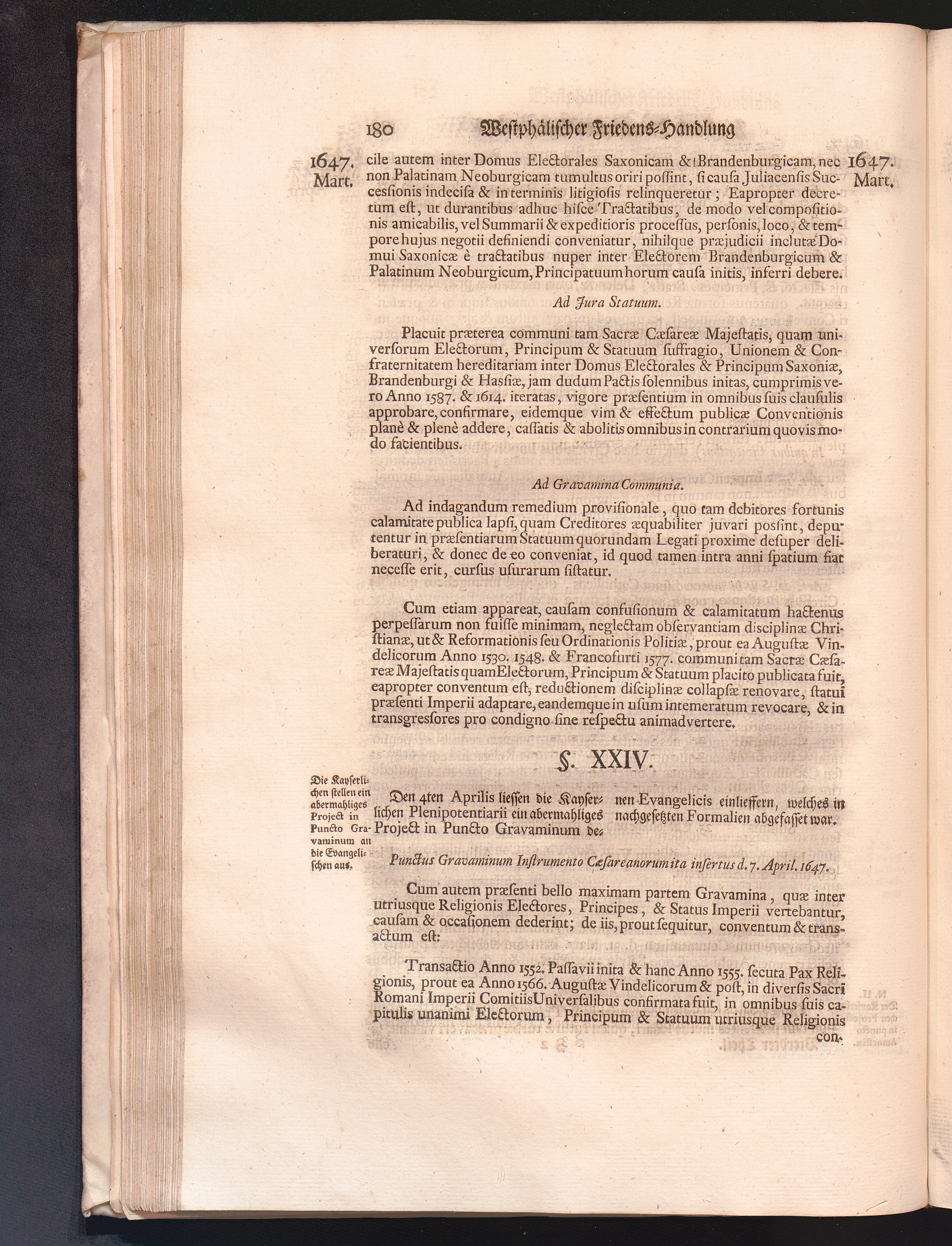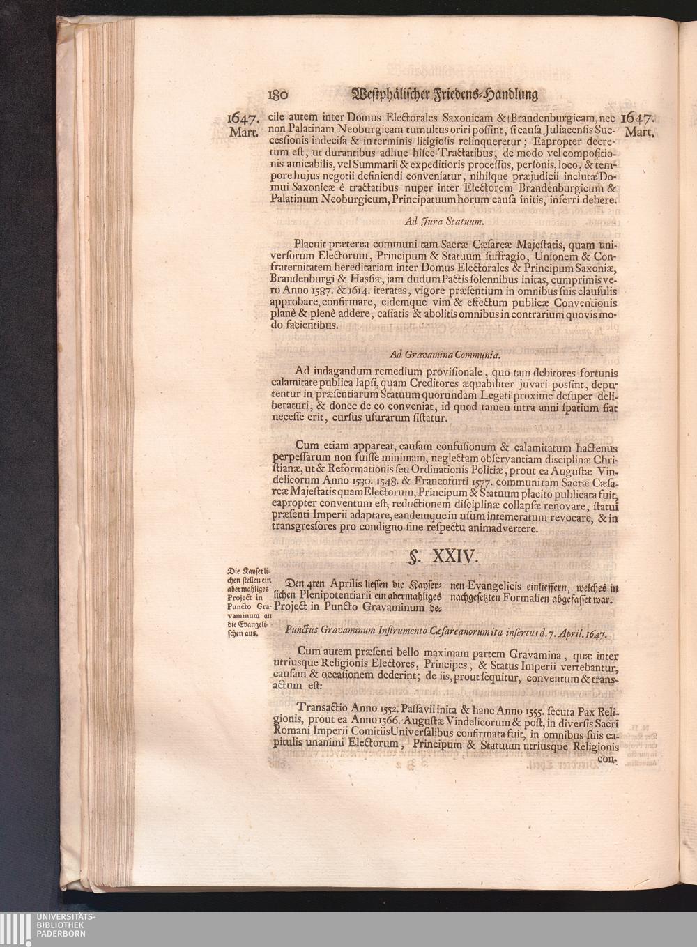 Vierdter Theil (1735) Worinnen enthalten, was vom Anfang des Jahrs 1647. biß gegen Ende desselben zwischen Jhro Römisch-Kayserlichen Majestät, dann den Beyden Cronen Franckreich und Schweden, ingleichen des Heiligen Römischen Reichs Chur-Fürsten, Fürsten und Ständen, zu Oßnabrück und Münster gehandelt worden