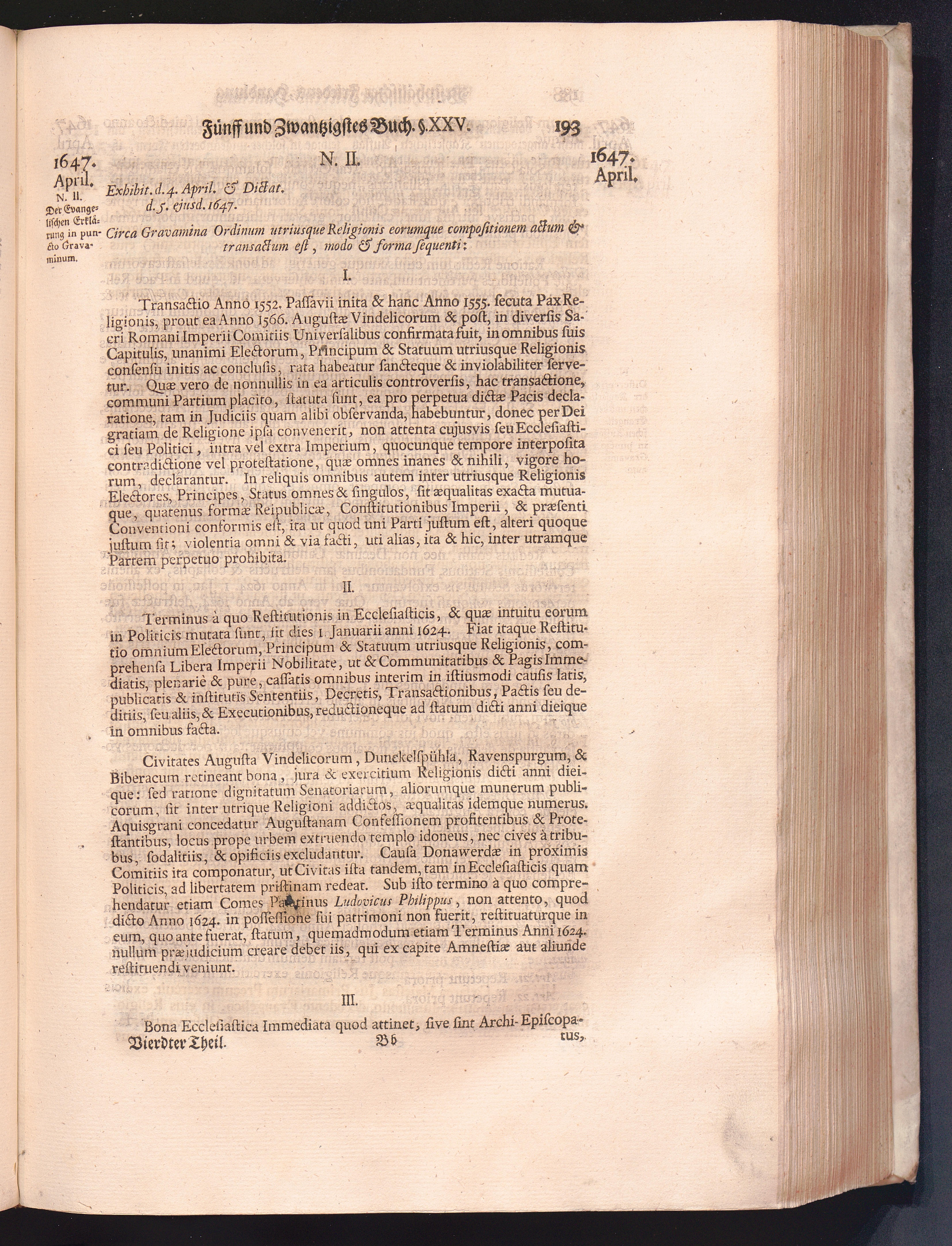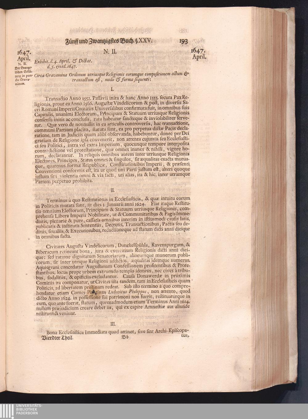 Vierdter Theil (1735) Worinnen enthalten, was vom Anfang des Jahrs 1647. biß gegen Ende desselben zwischen Jhro Römisch-Kayserlichen Majestät, dann den Beyden Cronen Franckreich und Schweden, ingleichen des Heiligen Römischen Reichs Chur-Fürsten, Fürsten und Ständen, zu Oßnabrück und Münster gehandelt worden