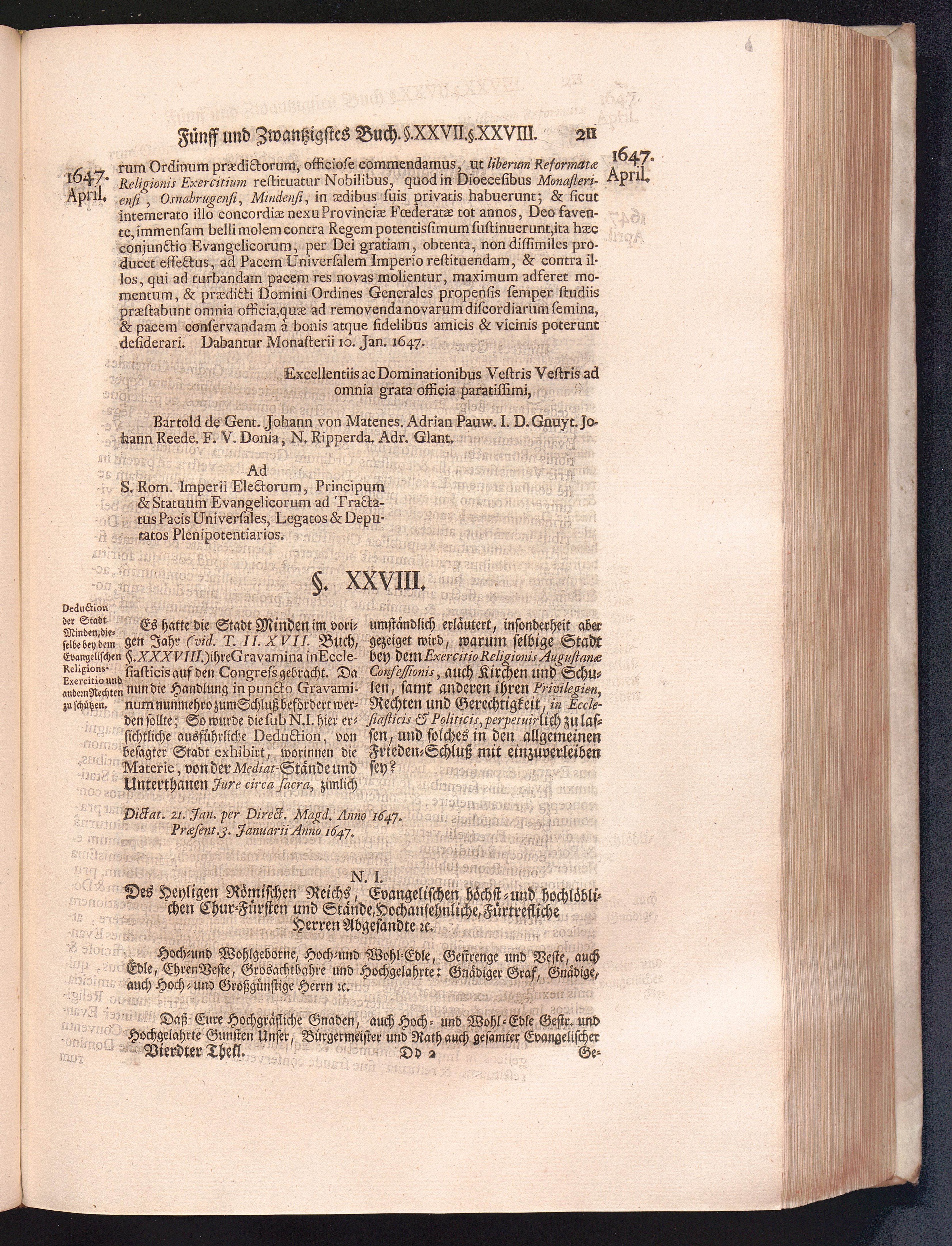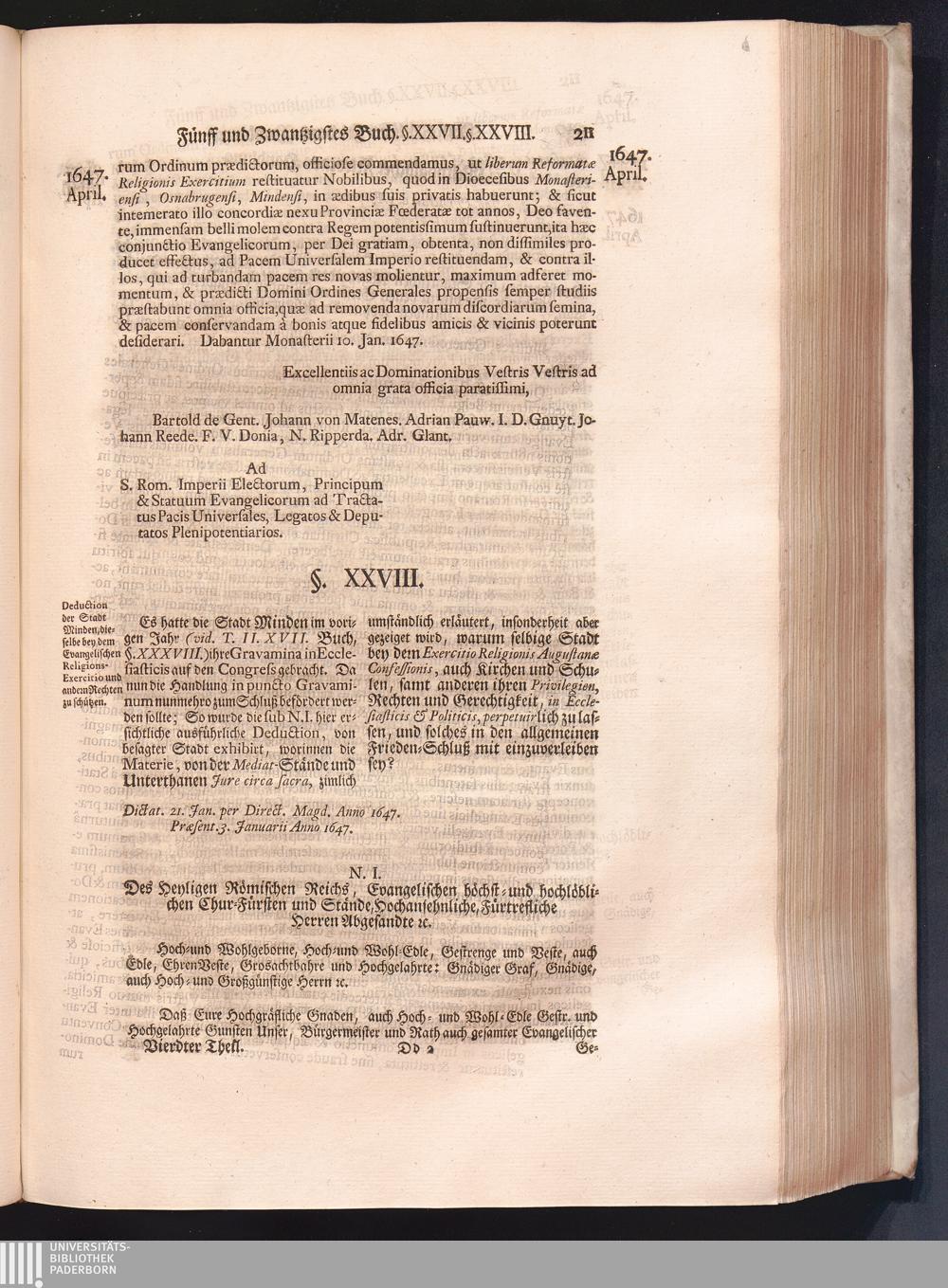 Vierdter Theil (1735) Worinnen enthalten, was vom Anfang des Jahrs 1647. biß gegen Ende desselben zwischen Jhro Römisch-Kayserlichen Majestät, dann den Beyden Cronen Franckreich und Schweden, ingleichen des Heiligen Römischen Reichs Chur-Fürsten, Fürsten und Ständen, zu Oßnabrück und Münster gehandelt worden