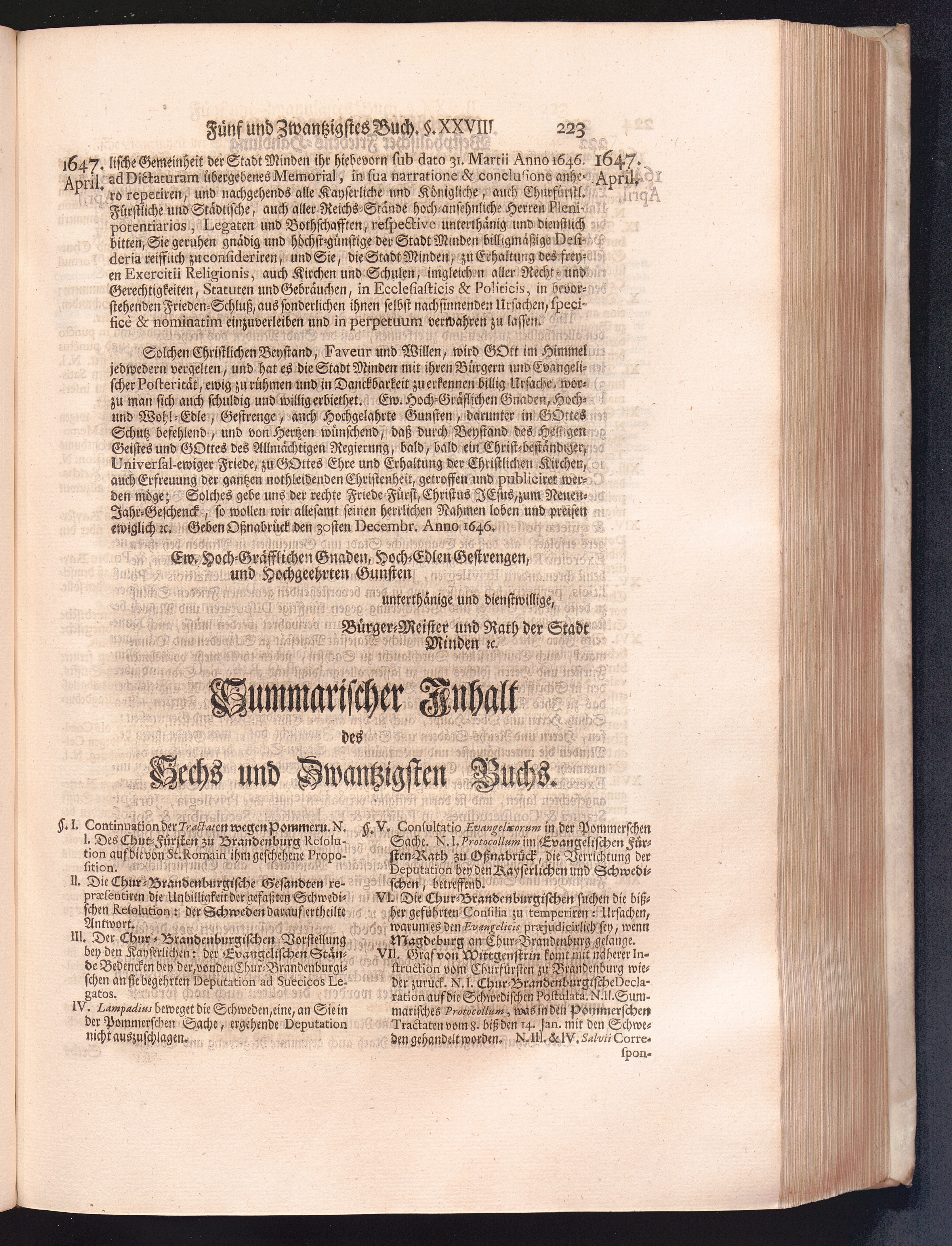 Vierdter Theil (1735) Worinnen enthalten, was vom Anfang des Jahrs 1647. biß gegen Ende desselben zwischen Jhro Römisch-Kayserlichen Majestät, dann den Beyden Cronen Franckreich und Schweden, ingleichen des Heiligen Römischen Reichs Chur-Fürsten, Fürsten und Ständen, zu Oßnabrück und Münster gehandelt worden