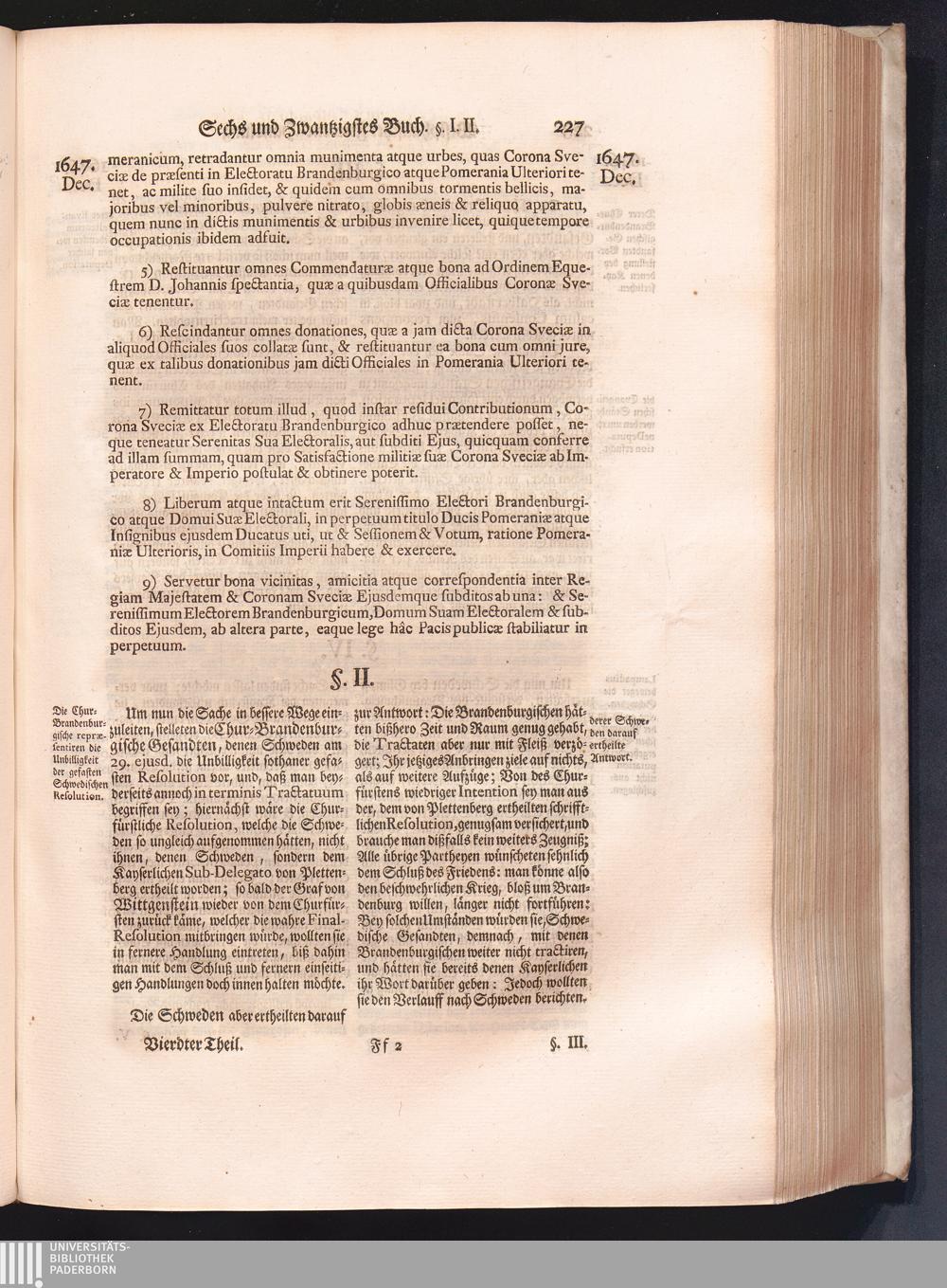 Vierdter Theil (1735) Worinnen enthalten, was vom Anfang des Jahrs 1647. biß gegen Ende desselben zwischen Jhro Römisch-Kayserlichen Majestät, dann den Beyden Cronen Franckreich und Schweden, ingleichen des Heiligen Römischen Reichs Chur-Fürsten, Fürsten und Ständen, zu Oßnabrück und Münster gehandelt worden