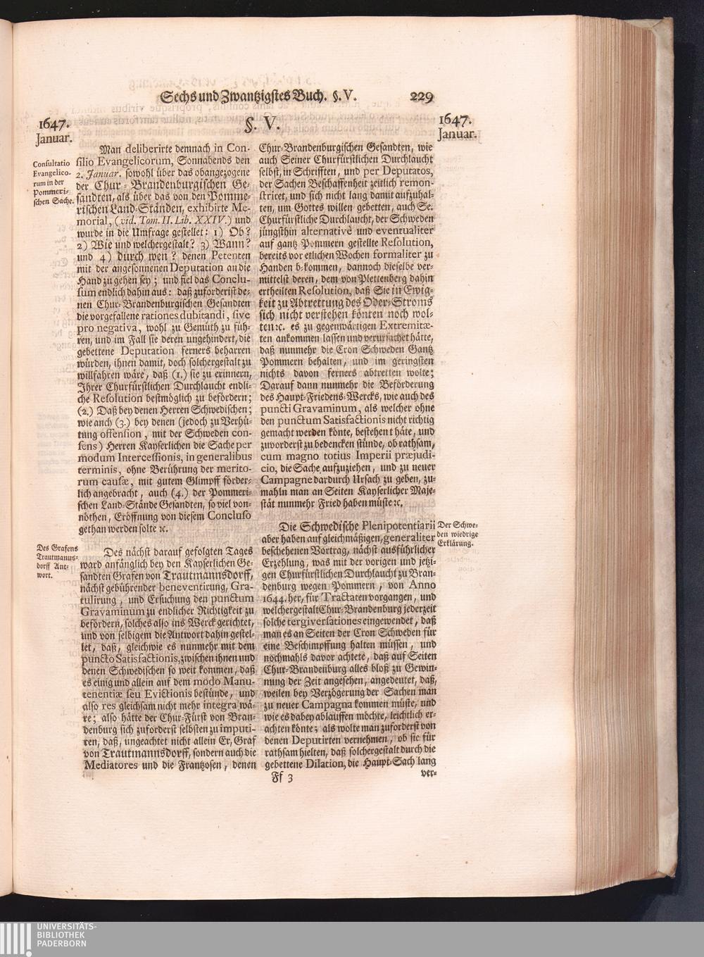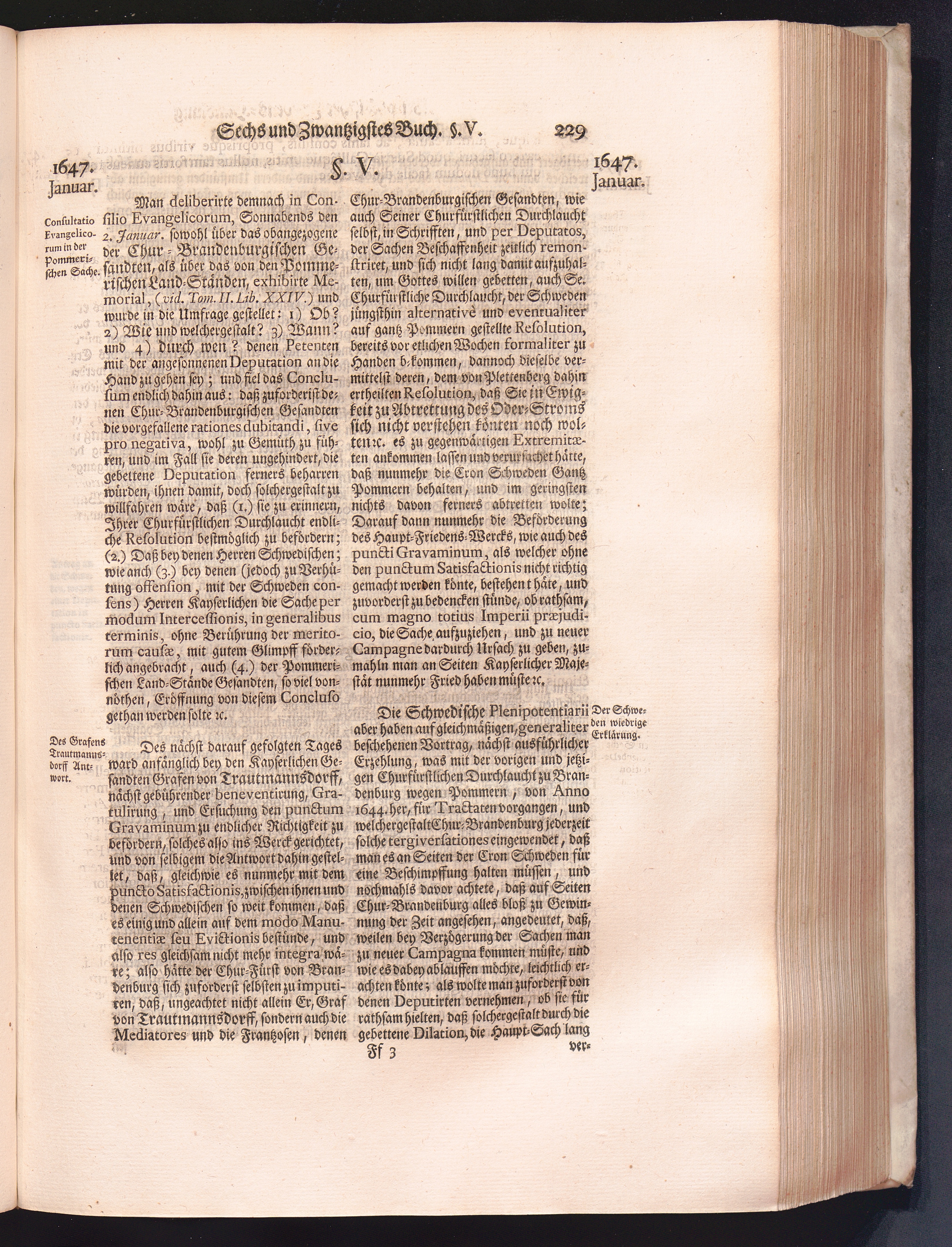 Vierdter Theil (1735) Worinnen enthalten, was vom Anfang des Jahrs 1647. biß gegen Ende desselben zwischen Jhro Römisch-Kayserlichen Majestät, dann den Beyden Cronen Franckreich und Schweden, ingleichen des Heiligen Römischen Reichs Chur-Fürsten, Fürsten und Ständen, zu Oßnabrück und Münster gehandelt worden