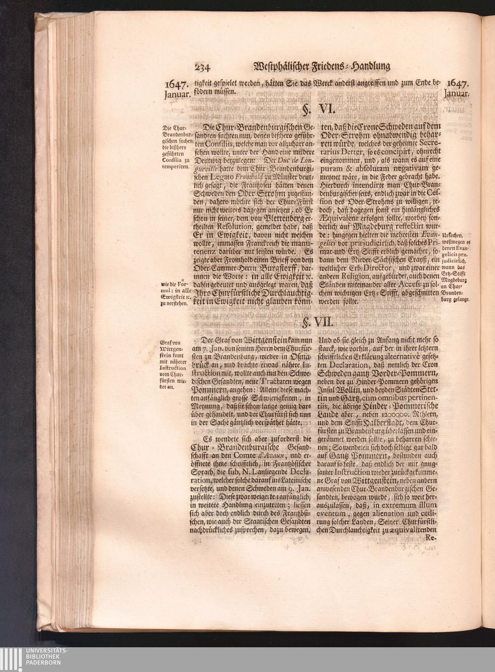 Vierdter Theil (1735) Worinnen enthalten, was vom Anfang des Jahrs 1647. biß gegen Ende desselben zwischen Jhro Römisch-Kayserlichen Majestät, dann den Beyden Cronen Franckreich und Schweden, ingleichen des Heiligen Römischen Reichs Chur-Fürsten, Fürsten und Ständen, zu Oßnabrück und Münster gehandelt worden