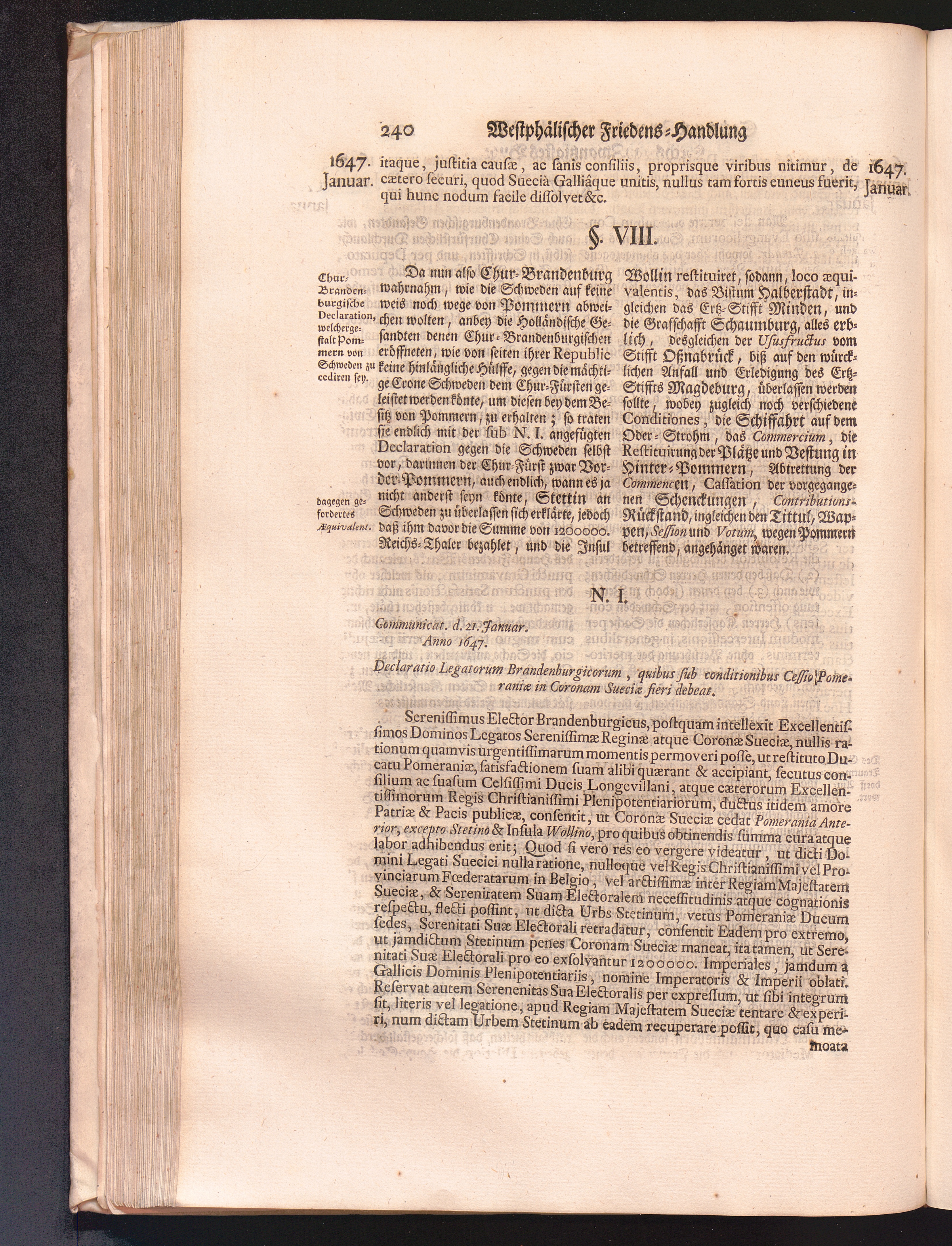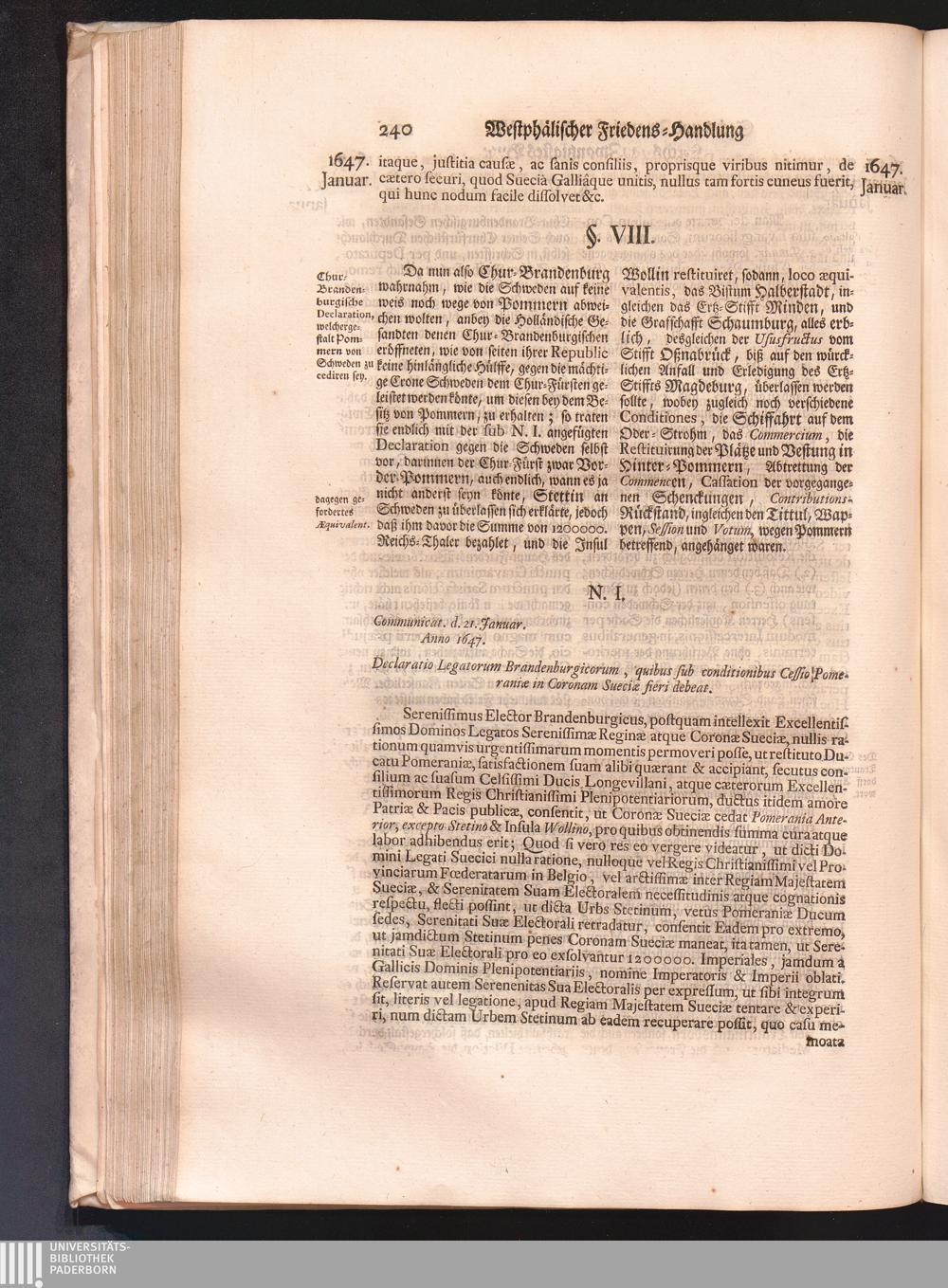 Vierdter Theil (1735) Worinnen enthalten, was vom Anfang des Jahrs 1647. biß gegen Ende desselben zwischen Jhro Römisch-Kayserlichen Majestät, dann den Beyden Cronen Franckreich und Schweden, ingleichen des Heiligen Römischen Reichs Chur-Fürsten, Fürsten und Ständen, zu Oßnabrück und Münster gehandelt worden