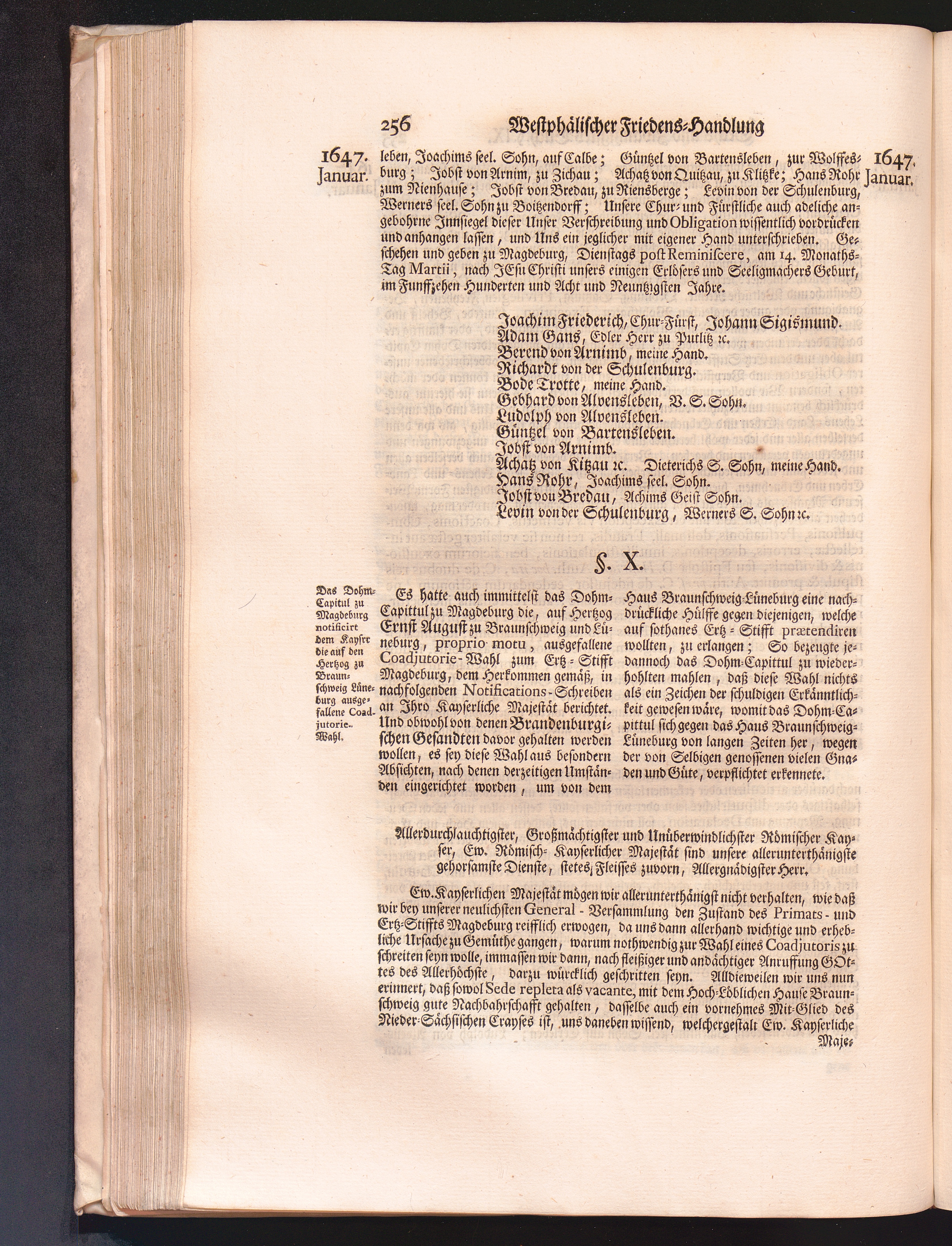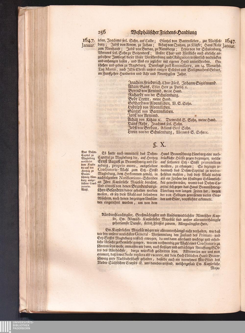 Vierdter Theil (1735) Worinnen enthalten, was vom Anfang des Jahrs 1647. biß gegen Ende desselben zwischen Jhro Römisch-Kayserlichen Majestät, dann den Beyden Cronen Franckreich und Schweden, ingleichen des Heiligen Römischen Reichs Chur-Fürsten, Fürsten und Ständen, zu Oßnabrück und Münster gehandelt worden