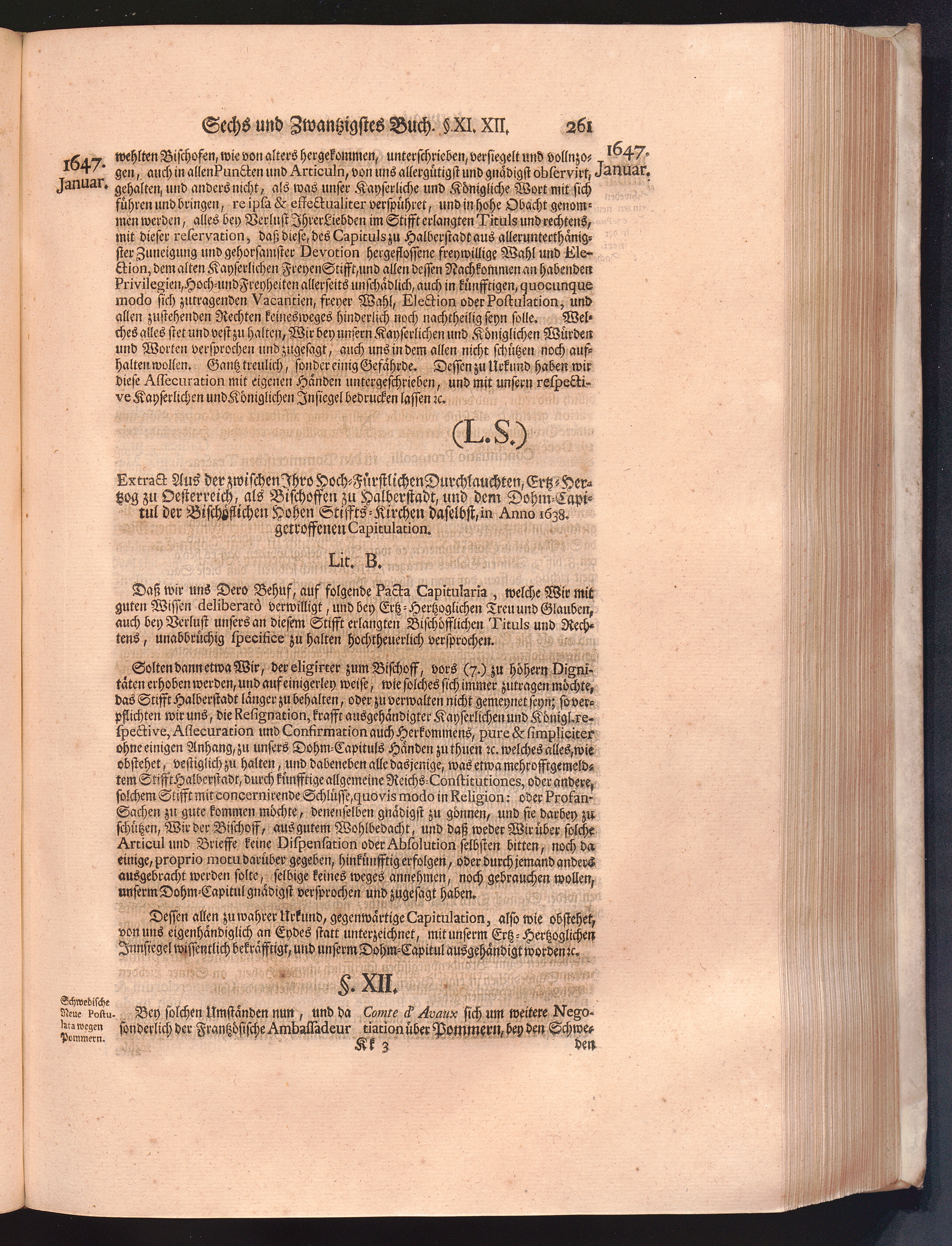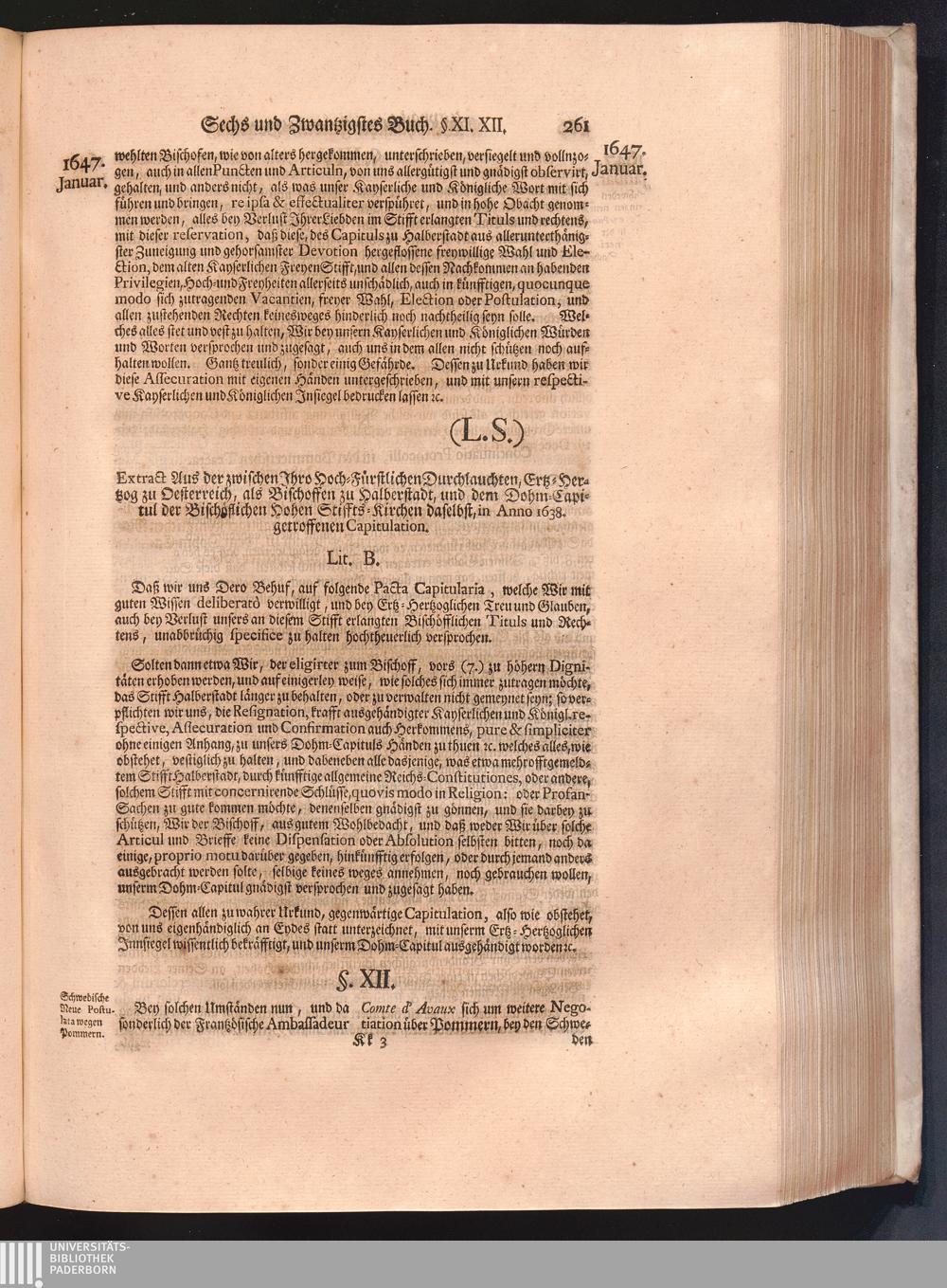Vierdter Theil (1735) Worinnen enthalten, was vom Anfang des Jahrs 1647. biß gegen Ende desselben zwischen Jhro Römisch-Kayserlichen Majestät, dann den Beyden Cronen Franckreich und Schweden, ingleichen des Heiligen Römischen Reichs Chur-Fürsten, Fürsten und Ständen, zu Oßnabrück und Münster gehandelt worden