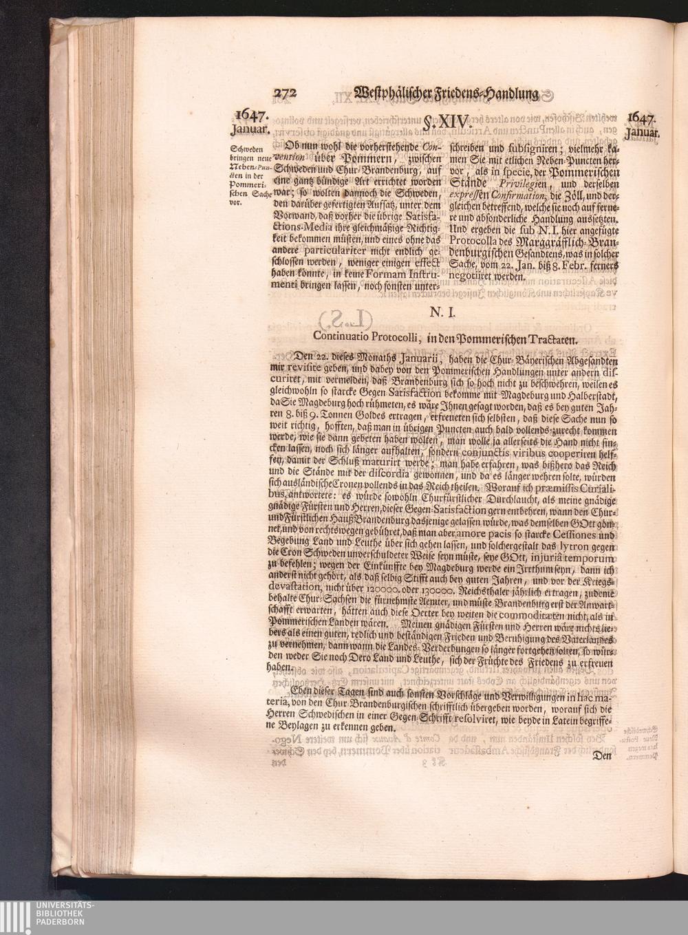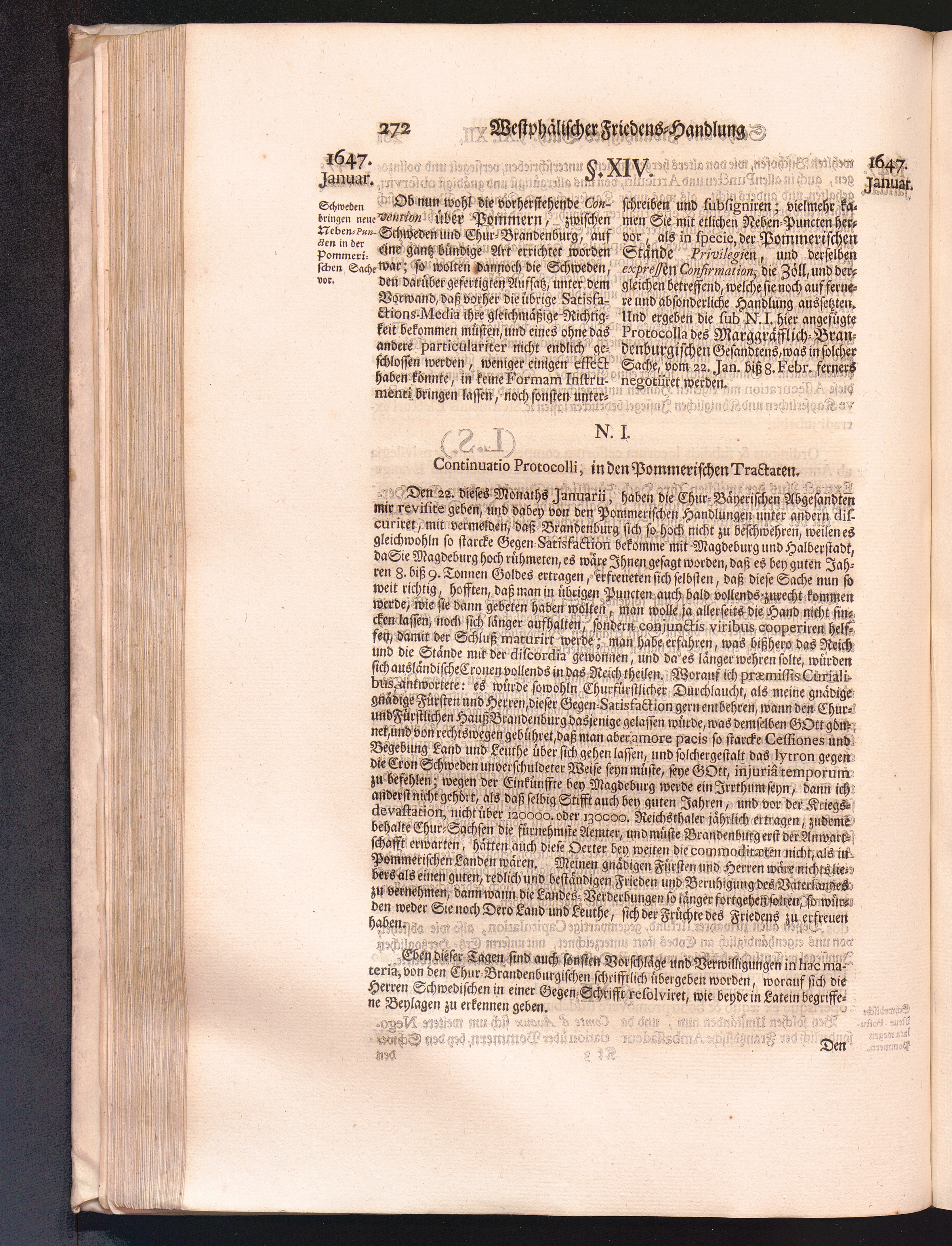Vierdter Theil (1735) Worinnen enthalten, was vom Anfang des Jahrs 1647. biß gegen Ende desselben zwischen Jhro Römisch-Kayserlichen Majestät, dann den Beyden Cronen Franckreich und Schweden, ingleichen des Heiligen Römischen Reichs Chur-Fürsten, Fürsten und Ständen, zu Oßnabrück und Münster gehandelt worden