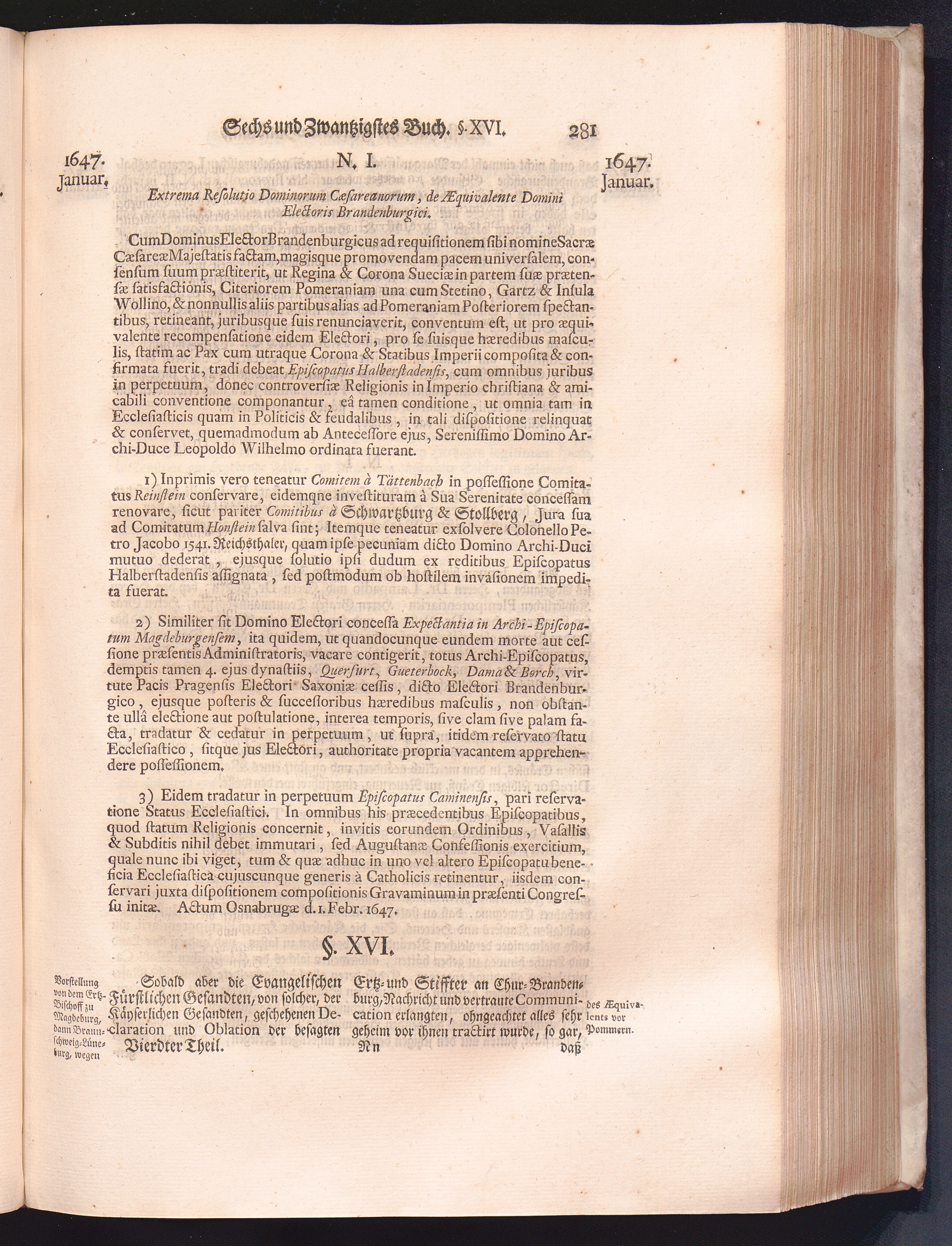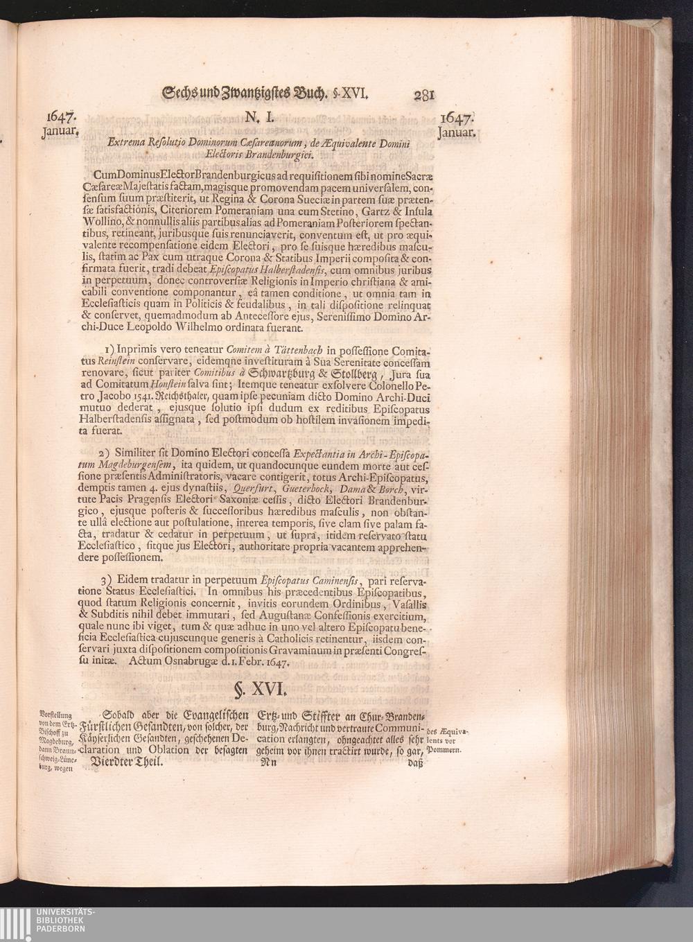 Vierdter Theil (1735) Worinnen enthalten, was vom Anfang des Jahrs 1647. biß gegen Ende desselben zwischen Jhro Römisch-Kayserlichen Majestät, dann den Beyden Cronen Franckreich und Schweden, ingleichen des Heiligen Römischen Reichs Chur-Fürsten, Fürsten und Ständen, zu Oßnabrück und Münster gehandelt worden