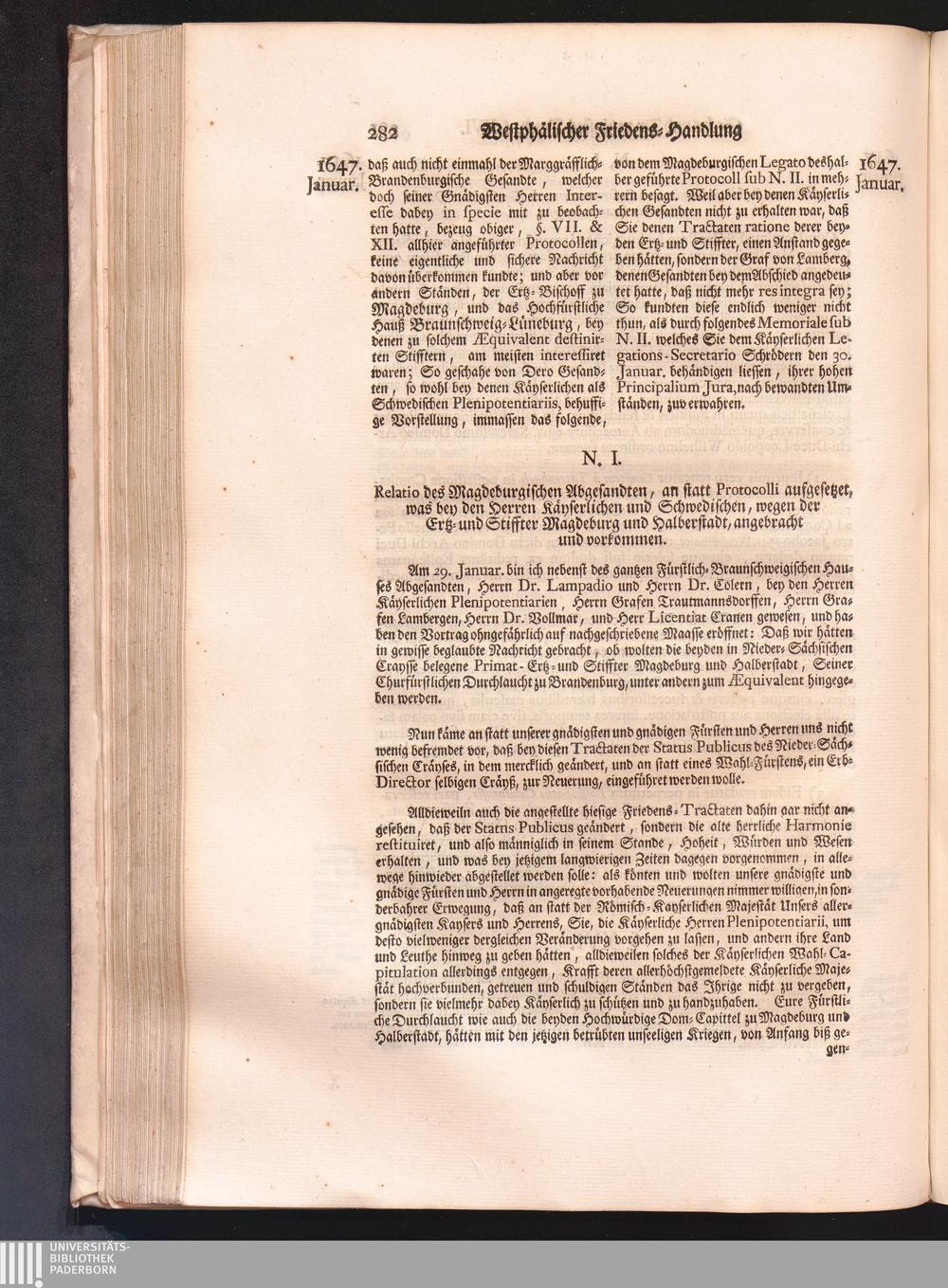 Vierdter Theil (1735) Worinnen enthalten, was vom Anfang des Jahrs 1647. biß gegen Ende desselben zwischen Jhro Römisch-Kayserlichen Majestät, dann den Beyden Cronen Franckreich und Schweden, ingleichen des Heiligen Römischen Reichs Chur-Fürsten, Fürsten und Ständen, zu Oßnabrück und Münster gehandelt worden