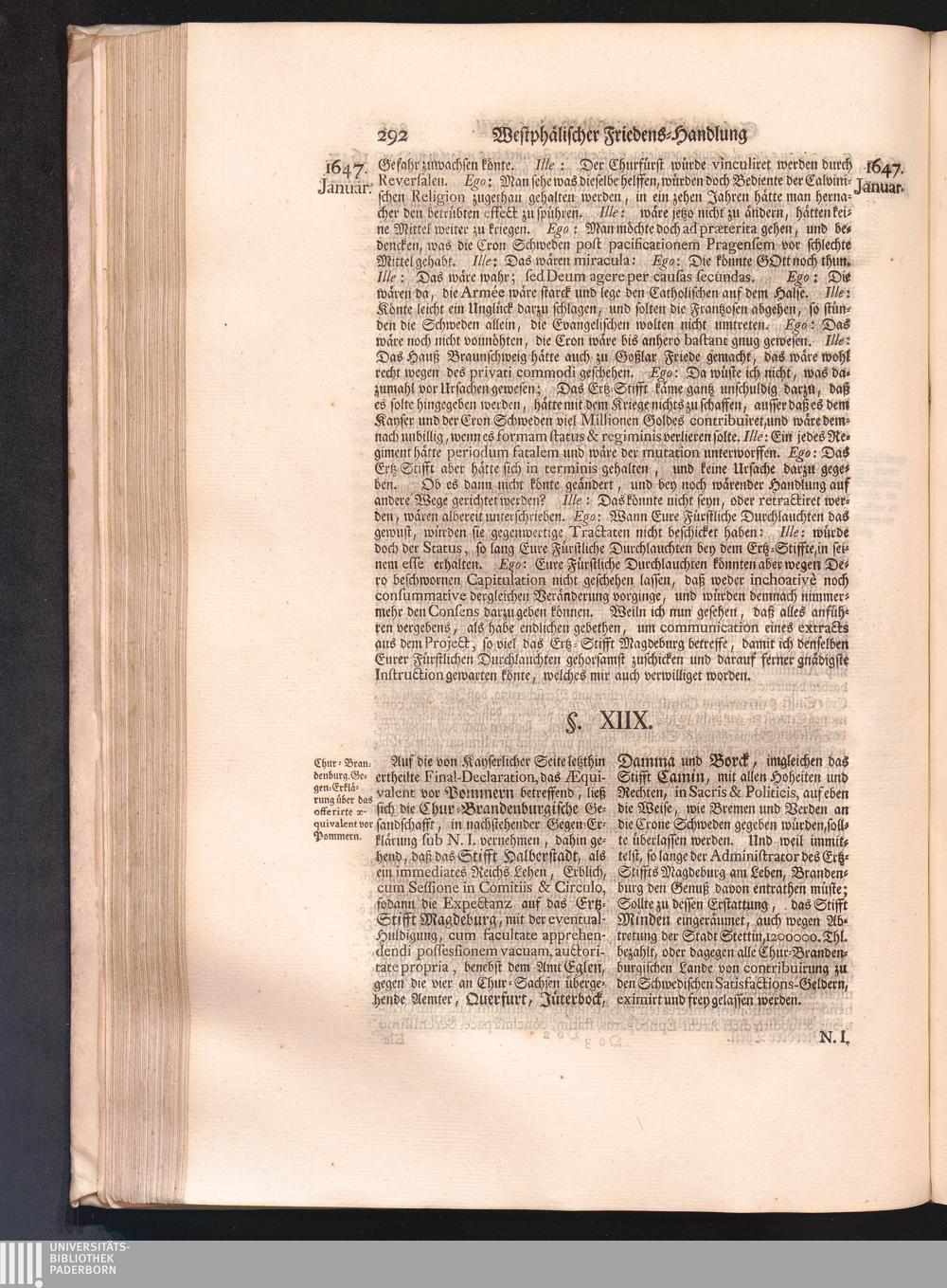 Vierdter Theil (1735) Worinnen enthalten, was vom Anfang des Jahrs 1647. biß gegen Ende desselben zwischen Jhro Römisch-Kayserlichen Majestät, dann den Beyden Cronen Franckreich und Schweden, ingleichen des Heiligen Römischen Reichs Chur-Fürsten, Fürsten und Ständen, zu Oßnabrück und Münster gehandelt worden