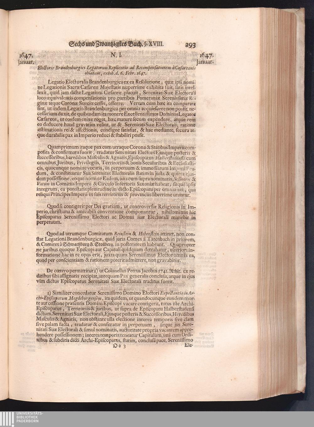 Vierdter Theil (1735) Worinnen enthalten, was vom Anfang des Jahrs 1647. biß gegen Ende desselben zwischen Jhro Römisch-Kayserlichen Majestät, dann den Beyden Cronen Franckreich und Schweden, ingleichen des Heiligen Römischen Reichs Chur-Fürsten, Fürsten und Ständen, zu Oßnabrück und Münster gehandelt worden
