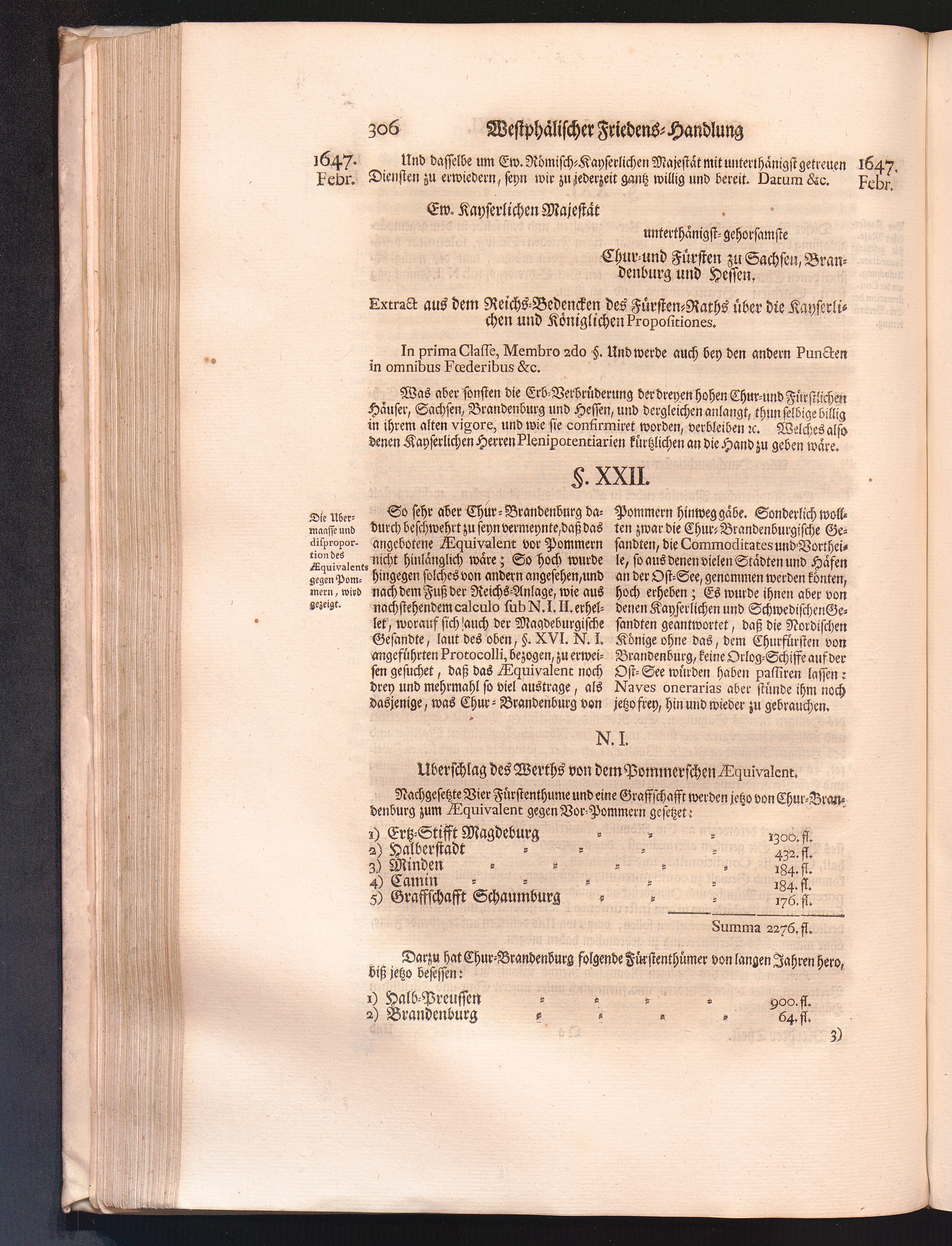 Vierdter Theil (1735) Worinnen enthalten, was vom Anfang des Jahrs 1647. biß gegen Ende desselben zwischen Jhro Römisch-Kayserlichen Majestät, dann den Beyden Cronen Franckreich und Schweden, ingleichen des Heiligen Römischen Reichs Chur-Fürsten, Fürsten und Ständen, zu Oßnabrück und Münster gehandelt worden