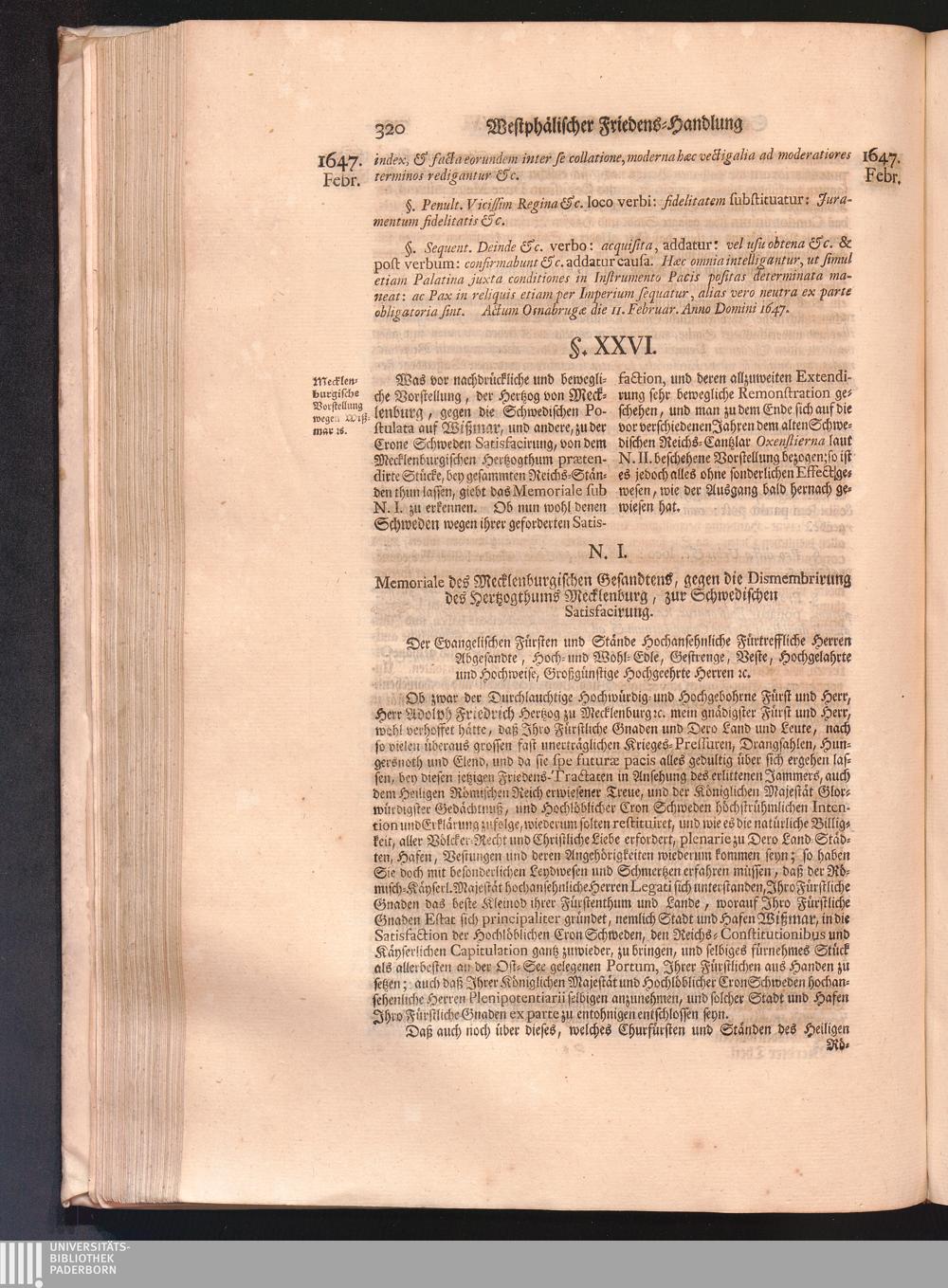 Vierdter Theil (1735) Worinnen enthalten, was vom Anfang des Jahrs 1647. biß gegen Ende desselben zwischen Jhro Römisch-Kayserlichen Majestät, dann den Beyden Cronen Franckreich und Schweden, ingleichen des Heiligen Römischen Reichs Chur-Fürsten, Fürsten und Ständen, zu Oßnabrück und Münster gehandelt worden