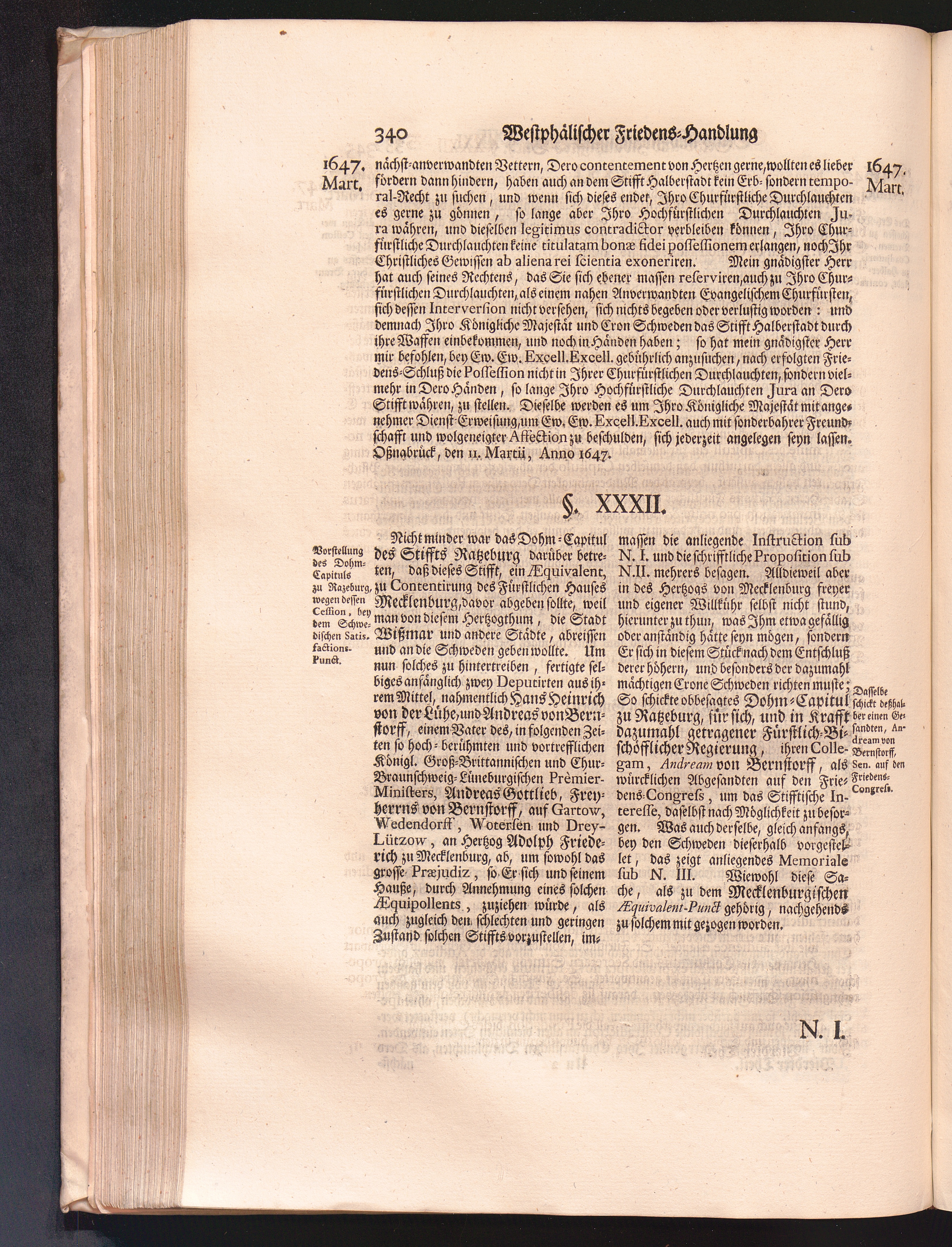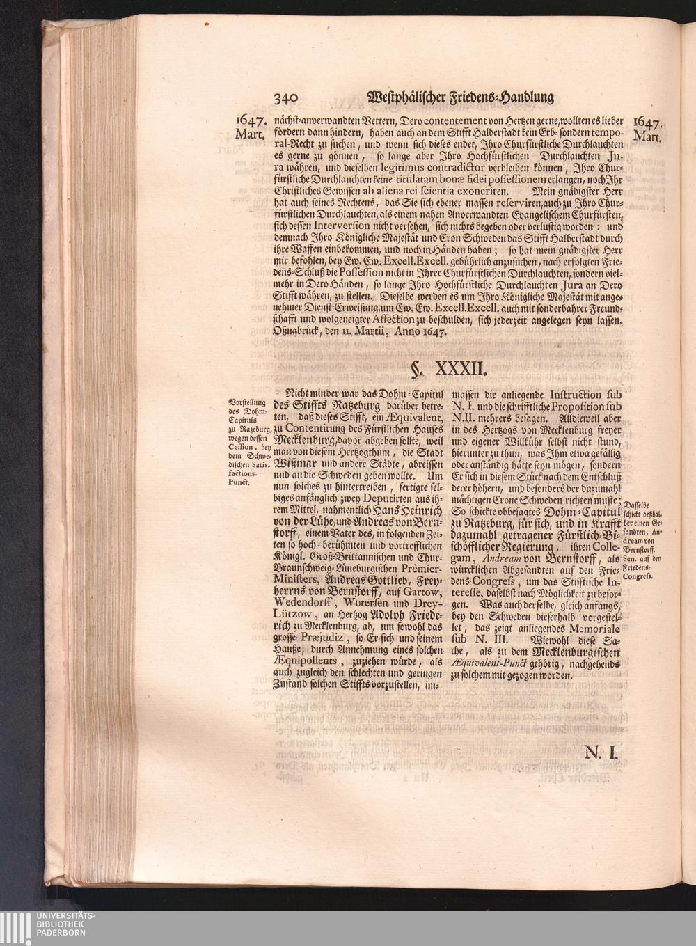 Vierdter Theil (1735) Worinnen enthalten, was vom Anfang des Jahrs 1647. biß gegen Ende desselben zwischen Jhro Römisch-Kayserlichen Majestät, dann den Beyden Cronen Franckreich und Schweden, ingleichen des Heiligen Römischen Reichs Chur-Fürsten, Fürsten und Ständen, zu Oßnabrück und Münster gehandelt worden
