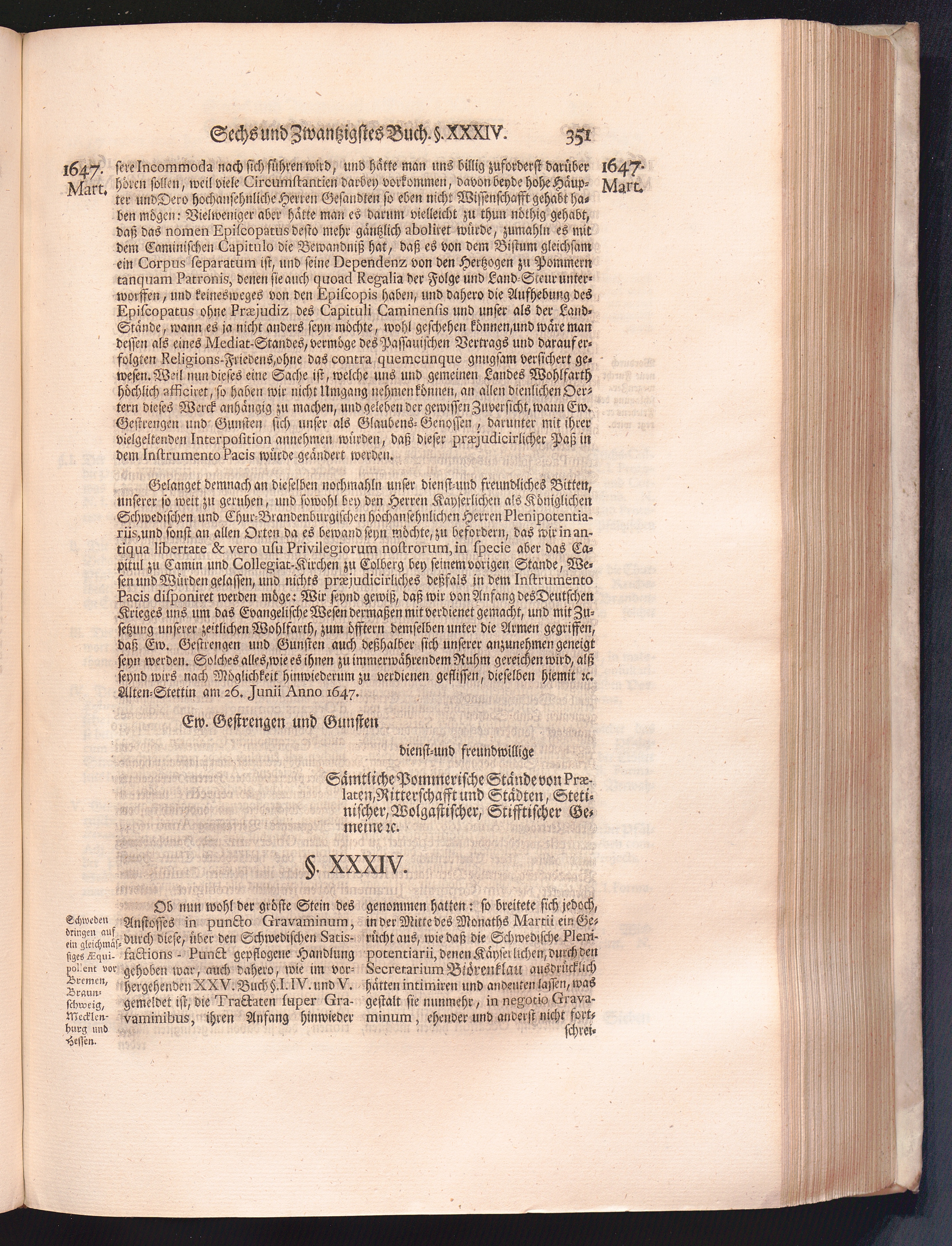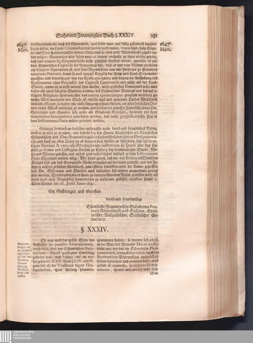 Vierdter Theil (1735) Worinnen enthalten, was vom Anfang des Jahrs 1647. biß gegen Ende desselben zwischen Jhro Römisch-Kayserlichen Majestät, dann den Beyden Cronen Franckreich und Schweden, ingleichen des Heiligen Römischen Reichs Chur-Fürsten, Fürsten und Ständen, zu Oßnabrück und Münster gehandelt worden