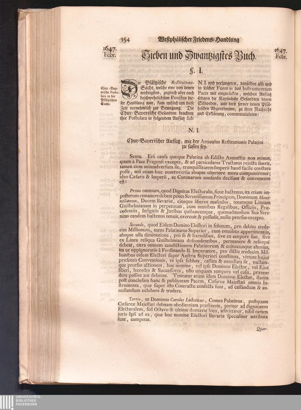 Vierdter Theil (1735) Worinnen enthalten, was vom Anfang des Jahrs 1647. biß gegen Ende desselben zwischen Jhro Römisch-Kayserlichen Majestät, dann den Beyden Cronen Franckreich und Schweden, ingleichen des Heiligen Römischen Reichs Chur-Fürsten, Fürsten und Ständen, zu Oßnabrück und Münster gehandelt worden