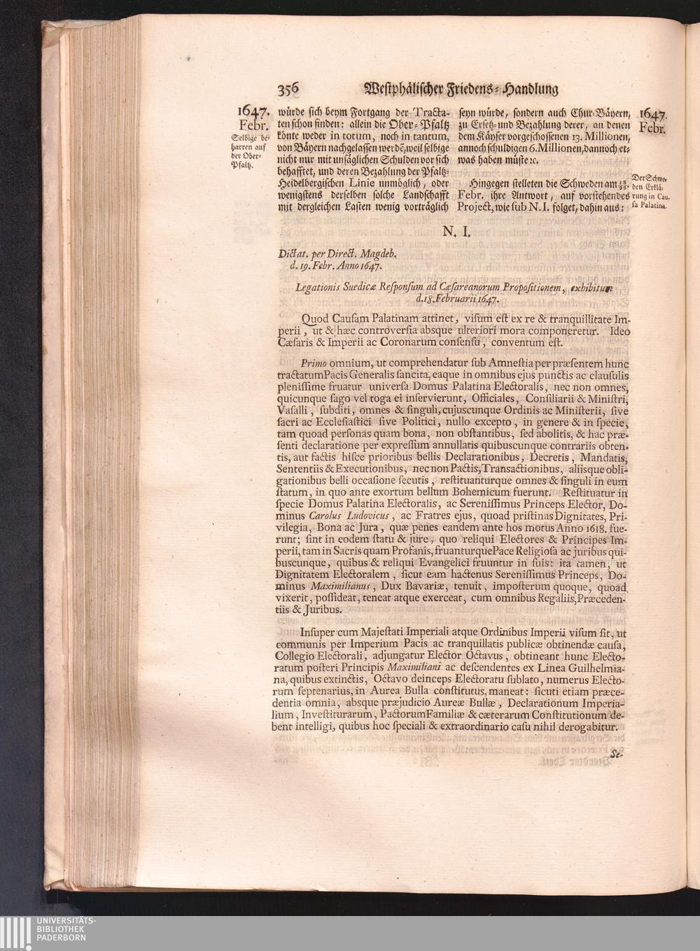 Vierdter Theil (1735) Worinnen enthalten, was vom Anfang des Jahrs 1647. biß gegen Ende desselben zwischen Jhro Römisch-Kayserlichen Majestät, dann den Beyden Cronen Franckreich und Schweden, ingleichen des Heiligen Römischen Reichs Chur-Fürsten, Fürsten und Ständen, zu Oßnabrück und Münster gehandelt worden