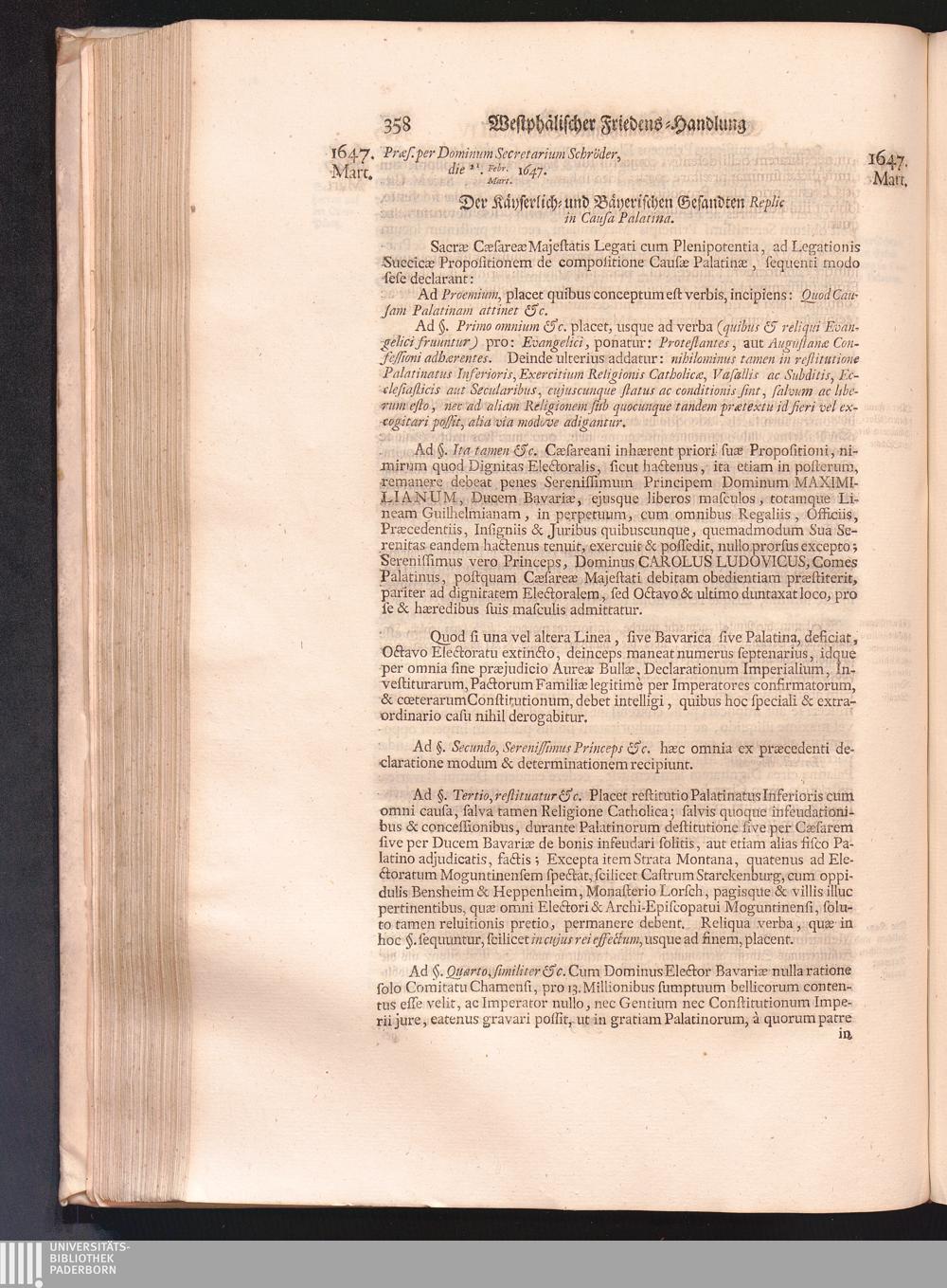 Vierdter Theil (1735) Worinnen enthalten, was vom Anfang des Jahrs 1647. biß gegen Ende desselben zwischen Jhro Römisch-Kayserlichen Majestät, dann den Beyden Cronen Franckreich und Schweden, ingleichen des Heiligen Römischen Reichs Chur-Fürsten, Fürsten und Ständen, zu Oßnabrück und Münster gehandelt worden